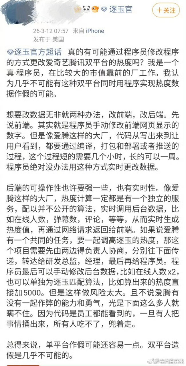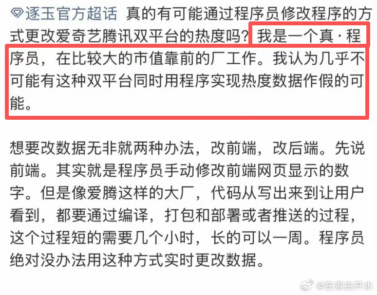 双平台热度造假是几乎不可能的程序员谈逐玉热度 双平台同时造假概率极低,《逐玉》数据好、下沉市场受欢迎还出海出圈,都是实打实的表现