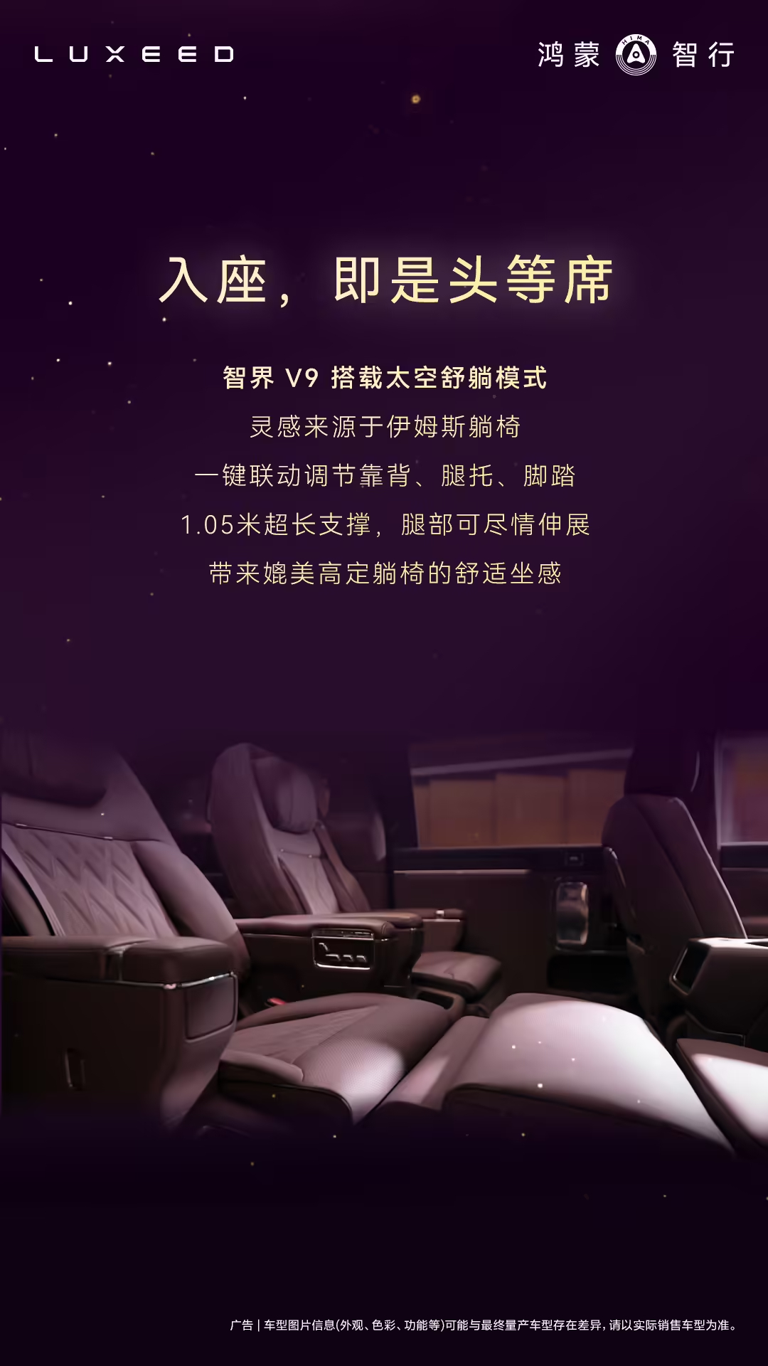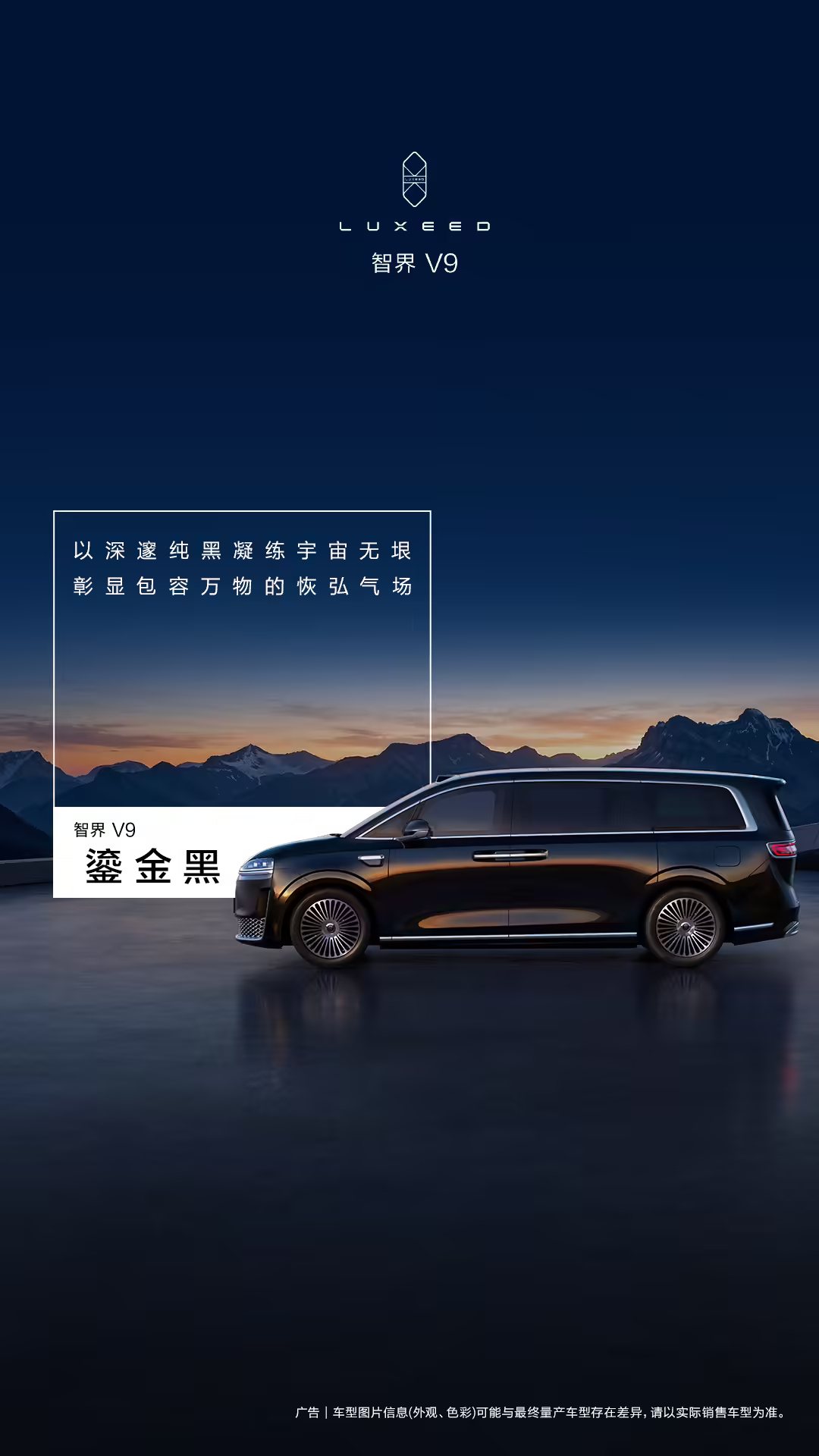 鸿蒙智行智界 V9 四款车色分别为辉光紫、深海蓝、雪域白、鎏金黑