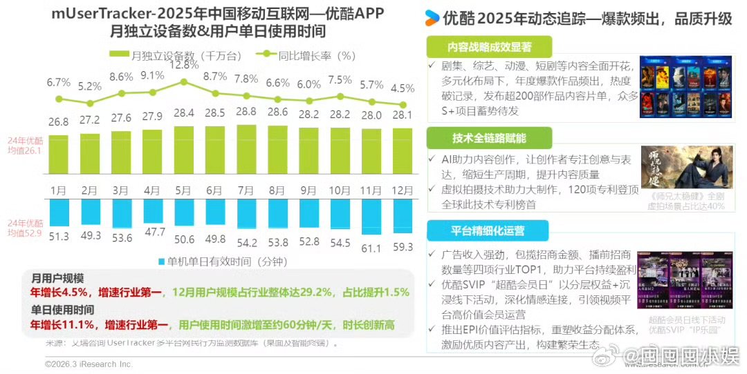 优酷交出亮眼年度成绩单2025的?,是长视频里的黑马!行业下滑它猛冲,双增速第一+80个大奖。优酷这次真的赢麻了艾瑞报告认证优酷双第一