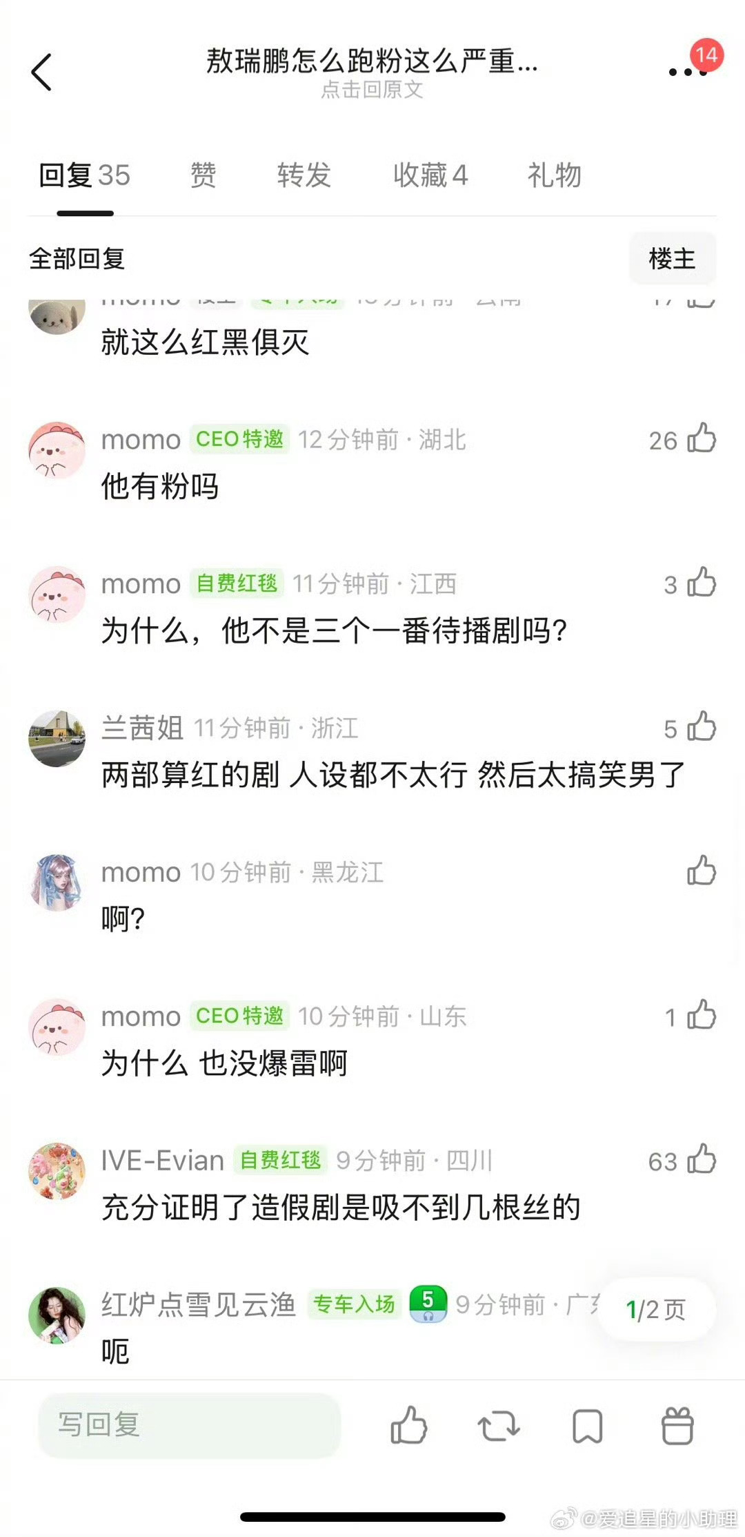 敖瑞鹏线下粉丝为什么这么少?一点浩然气杀青逆应援5200份,昨天不二之臣杀青只有1260人,还有红V也跑路了,他播出了那么多作品,没圈到粉丝吗?