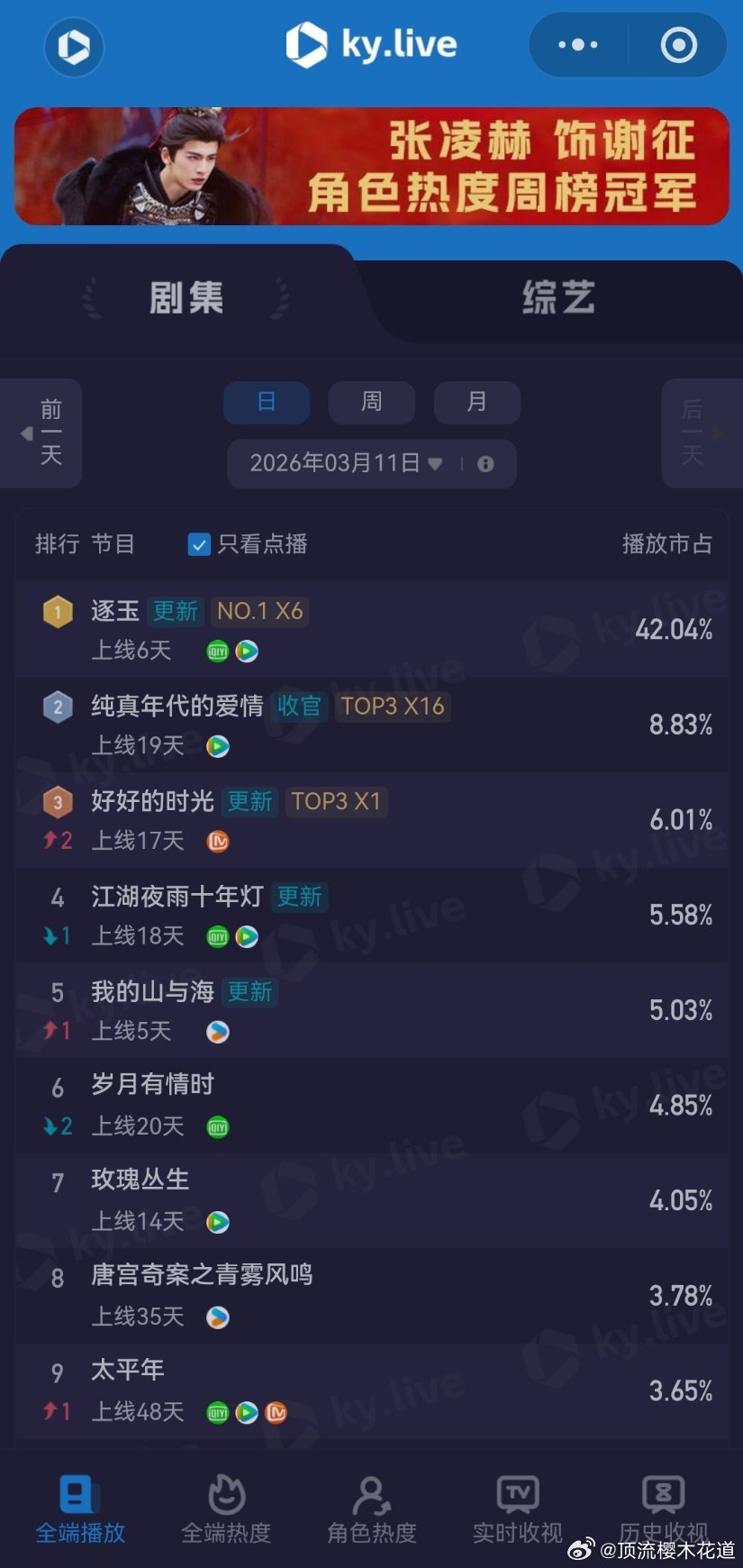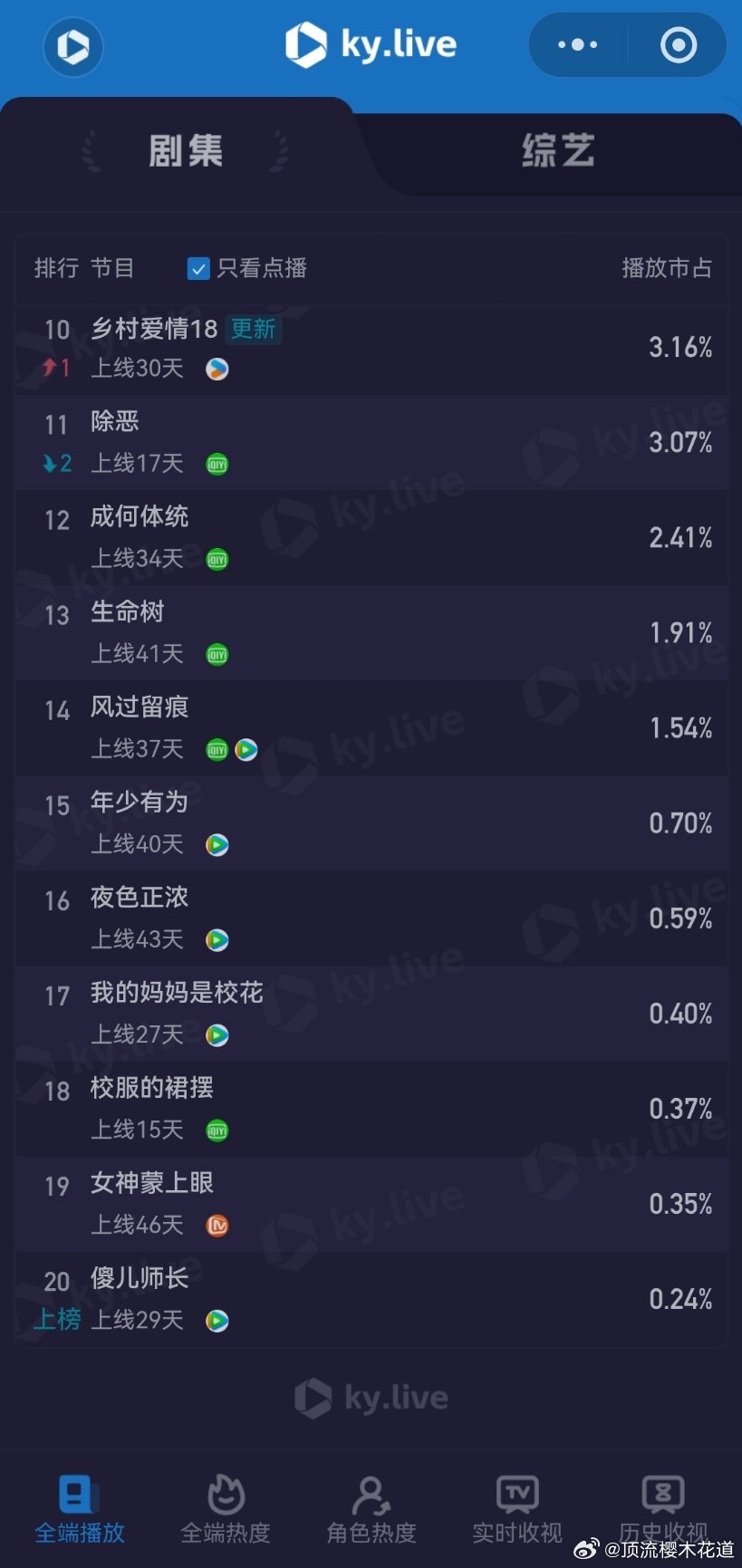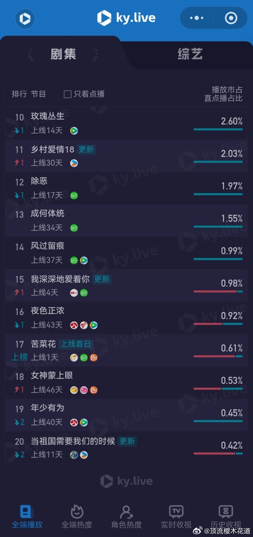 3月11日云合播放占比云合 VS酷云已失去评价这些数据的兴趣,请自行查看,内心各自心里有数。