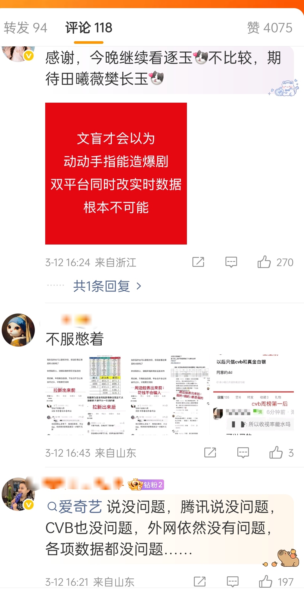 内娱有自己的311逐玉数据真实性《逐玉》粉丝说他们剧粉,路转粉特别多,没问题,我