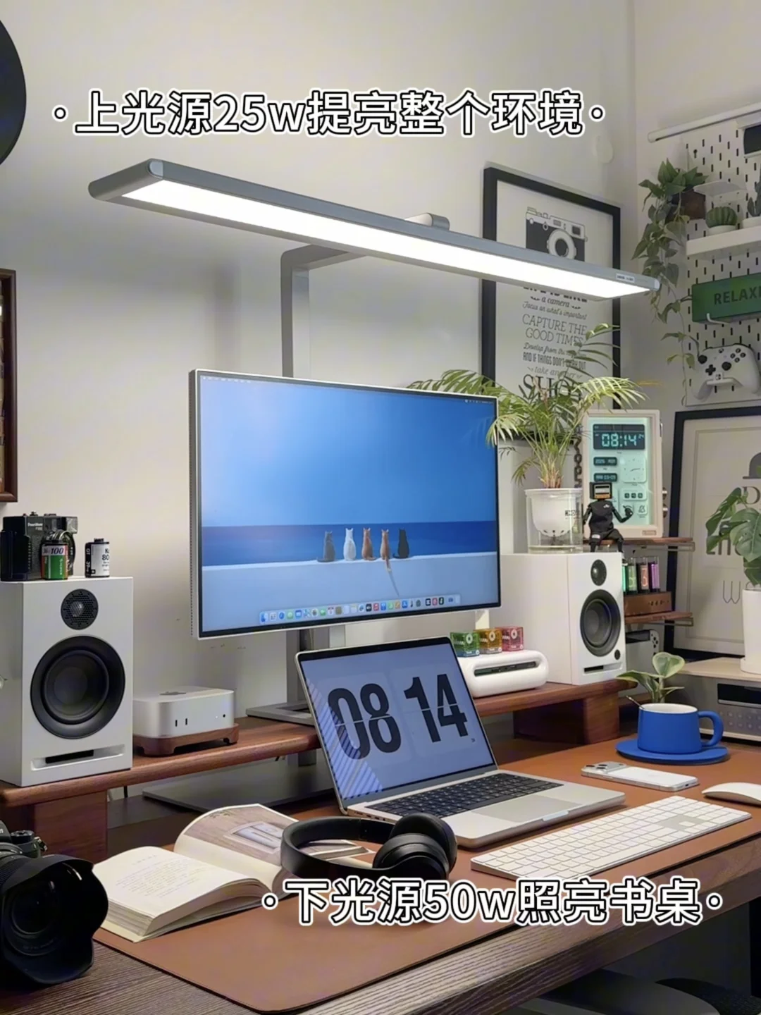 下光源50w照亮书桌,上光源25w提亮整个环境