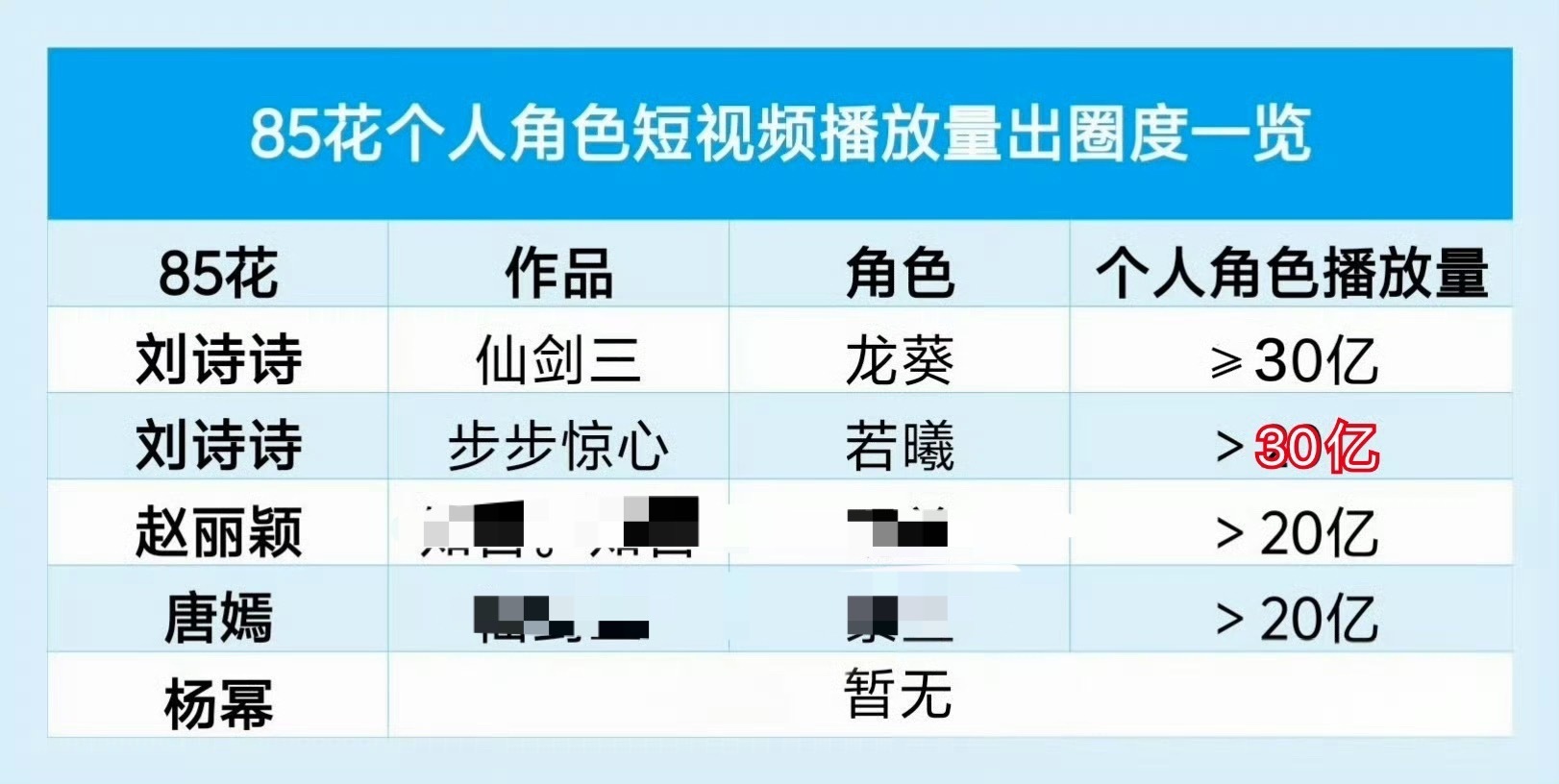 爆剧 养老剧 长尾剧,看重播也能看出来:《女医明妃传》重播300轮,《步步惊心》《流金岁月》近200轮,《仙剑奇侠传三》超100轮📺,龙葵若曦双角色抖播放量破30亿,《步步惊心》《流金岁月》《一念关山》抖均破百亿播放✨还有《怪侠一枝梅》《掌心》等标杆。刘诗诗剧长尾,角色长青,实绩确实能打!
