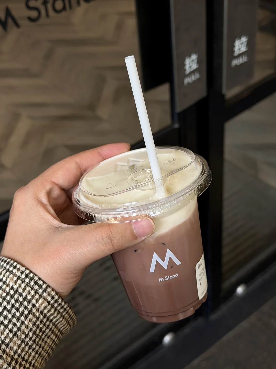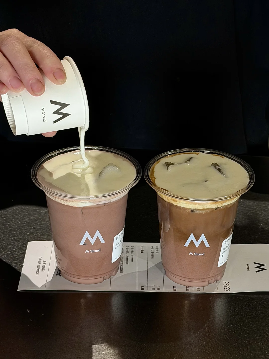 好喝!!!M Stand新出的两杯咸法酪可可系列! 咸法酪搭配可可就是很曼妙! 一定要先抿两口顶部咸香的芝士🧀,再品尝醇厚的可可,整体是那种咸甜交织的享受~ 个人更喜欢拿铁那杯,意式浓缩在里面丰富了口感,淡淡的坚果香很惊喜,值得细品的一杯!! 这次周边是手拿包👜,有米色、灰色、黑色可选 最后选了米色,比较偏休闲随性一点~