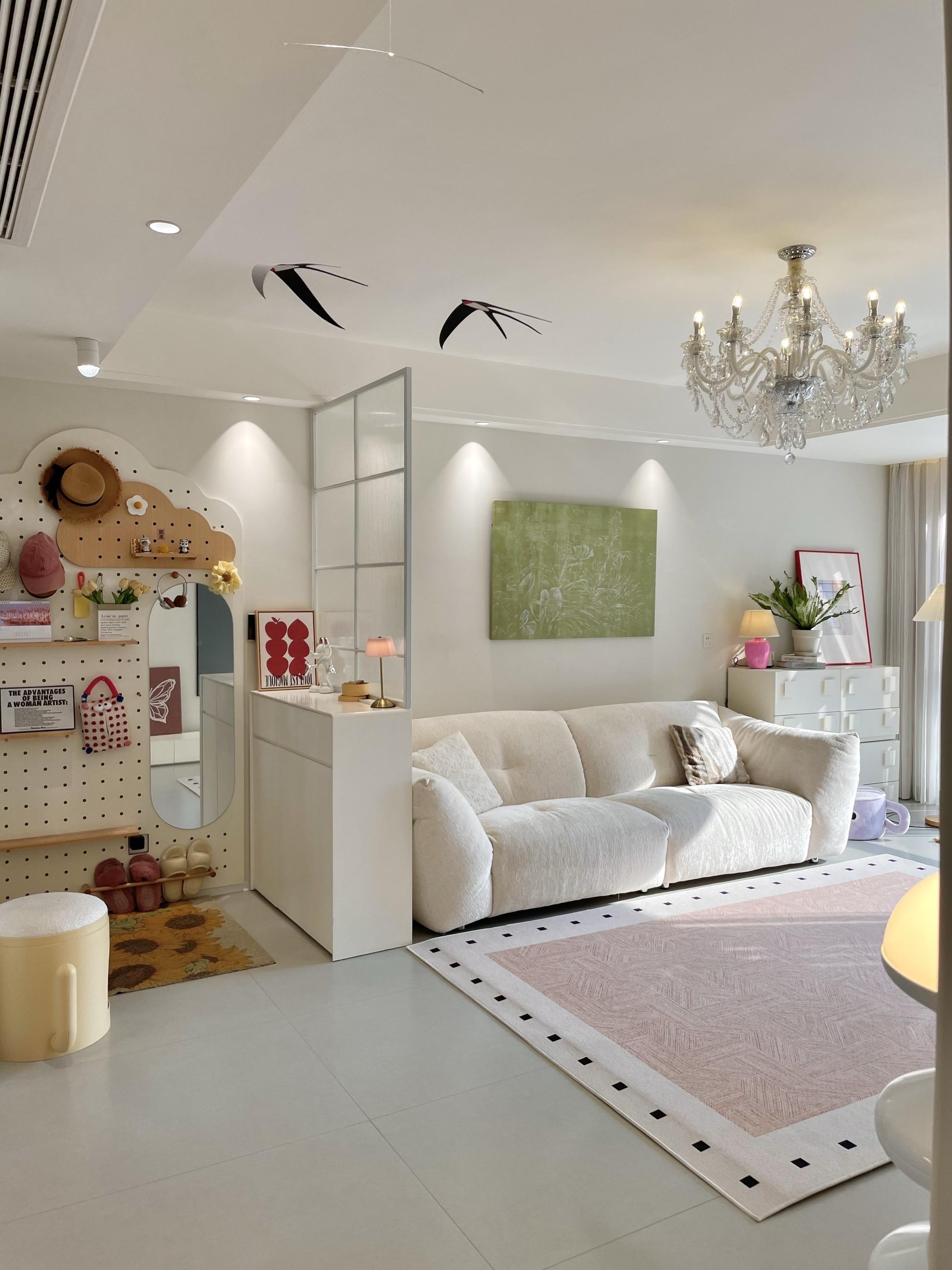 开门见厅的户型,没玄关就按照我家这样做吧。我家户型很尴尬,开门就看见客...