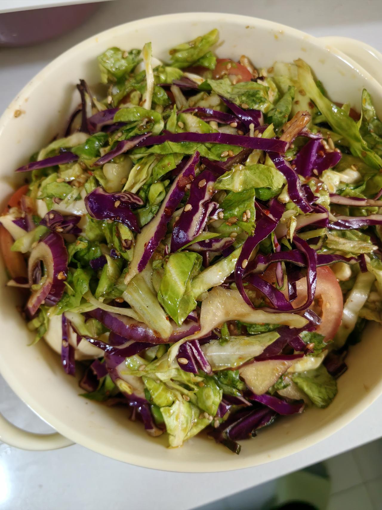 跟风复刻了一下陶德砂锅的小拌菜, 口感还是挺好的, 但是没人告诉我, 这么搭配是窜稀套餐啊? 不知道是不是辣椒油太辣了, 吃完整个人都不好了。 某种程度上可能也轻体了, 就是过程属实不太美好。 建议大家不要轻易尝试吧。[捂脸] 春日生活打卡季 拌菜 轻食