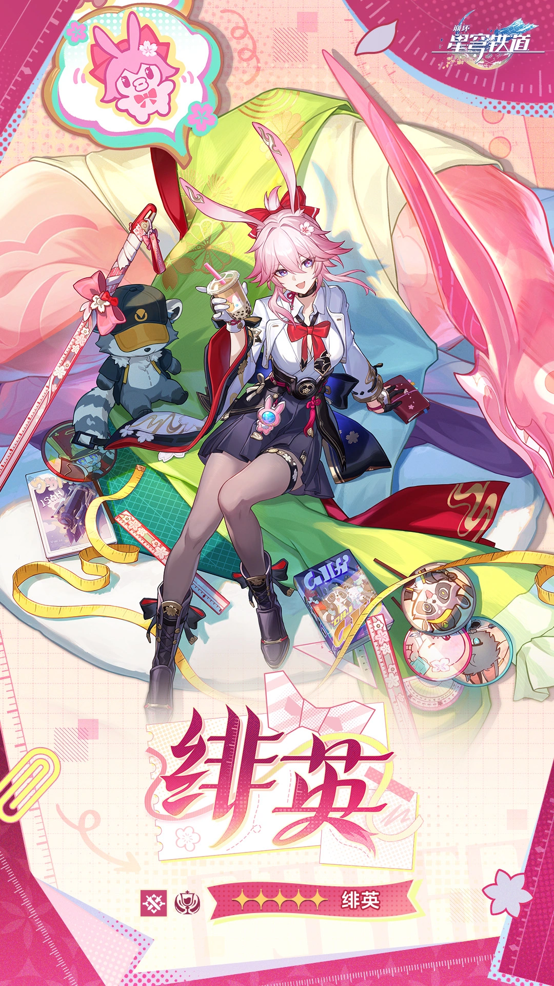 4.2下半限定五星:绯英(物理欢愉) ———————————— 「恭喜你发现宝藏!我就是绯英,你好啊,大主角小浣熊。往常在这场狂欢里,我只会确保幻月游戏顺利召开,但这一次,如果是同你一起上台表演,也未尝不可呀!」 一季幻月满盈,一季人世更迭,神秘少女再度现身二相乐园! 落英易散,她的停留也不过刹那。新时代的一切令她痴迷,绝不容许有人破坏—— 一把尺刀裁定正邪,可谁又能知,己身善恶几何? ========== 阿哈!特别庆祝绯英获得: ✧「先天二次元圣体」第1名 ✧ ✧「永远的女子高中生」第1名 ✧ ✧「十年树木百年树人」第1名 ✧ ========== 中文CV:溯浔 日文CV:佐仓绫音 韩文CV:문유정