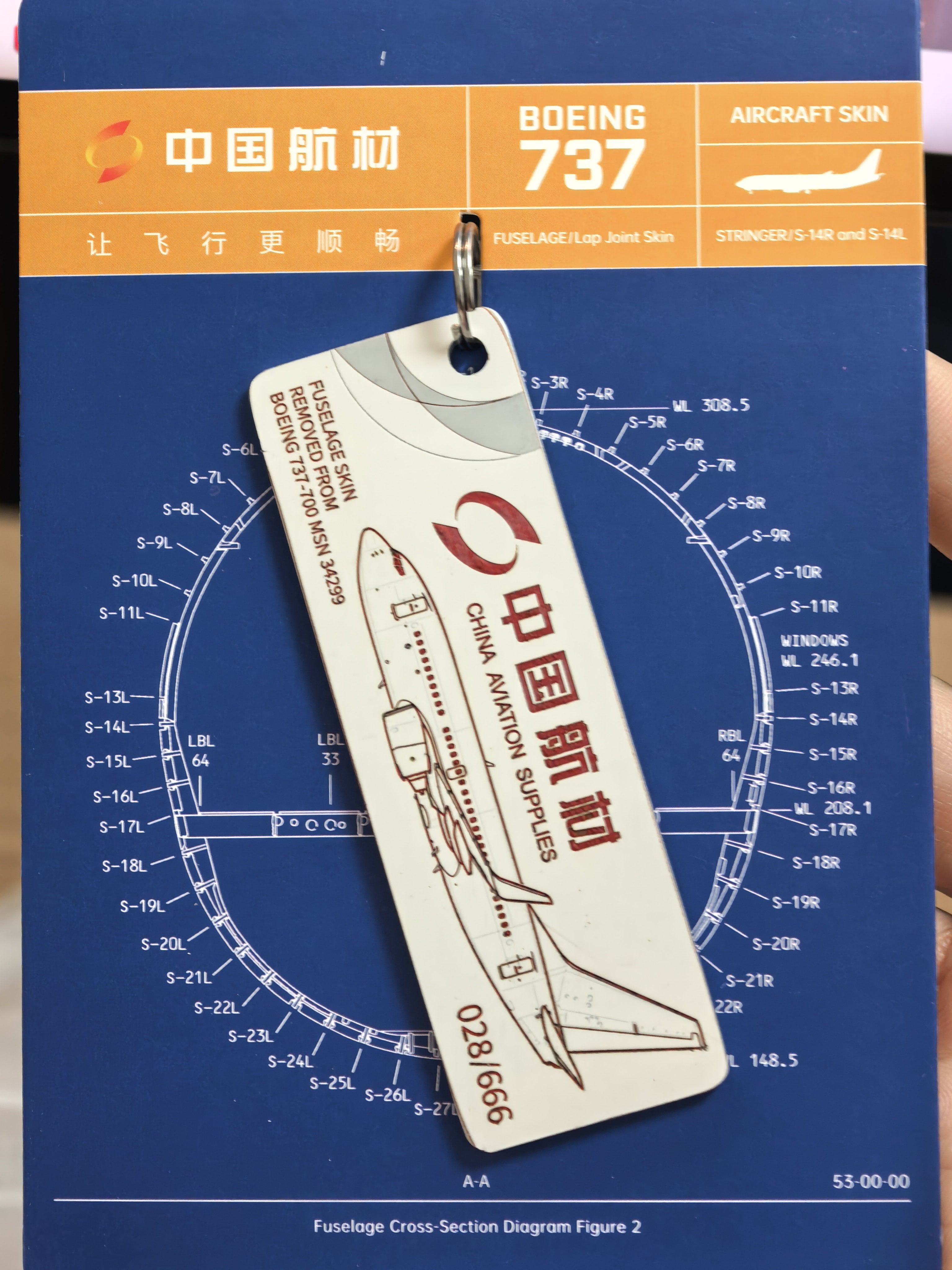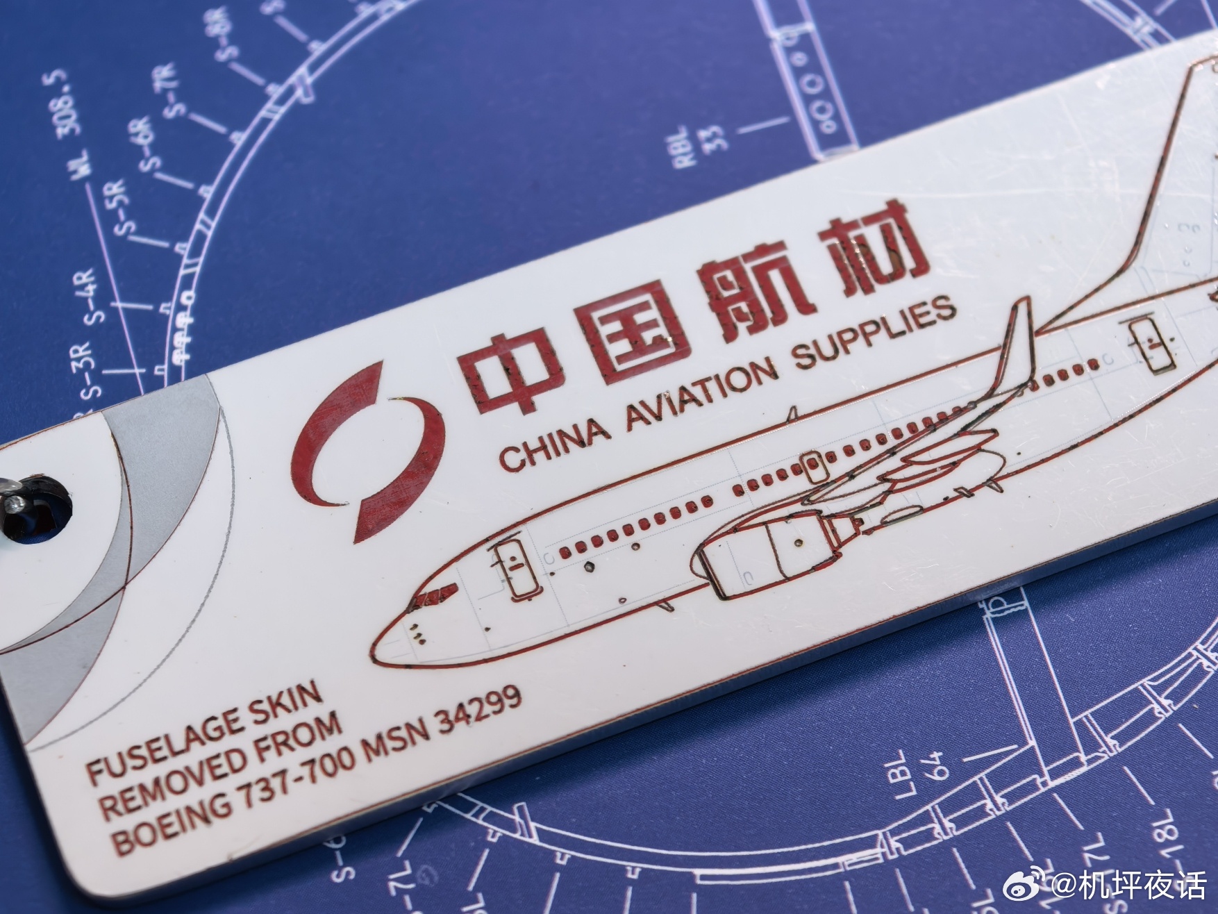 中国航材出品的这个钥匙扣设计上是费了一番功夫的,本来只是一块普通白色蒙皮,但因为飞机的底漆是红色,通过精准的激光控制,去除上层白漆后自然的呈现了红白的对比,细节充盈,价格也不贵,不过仅在其官网销售。