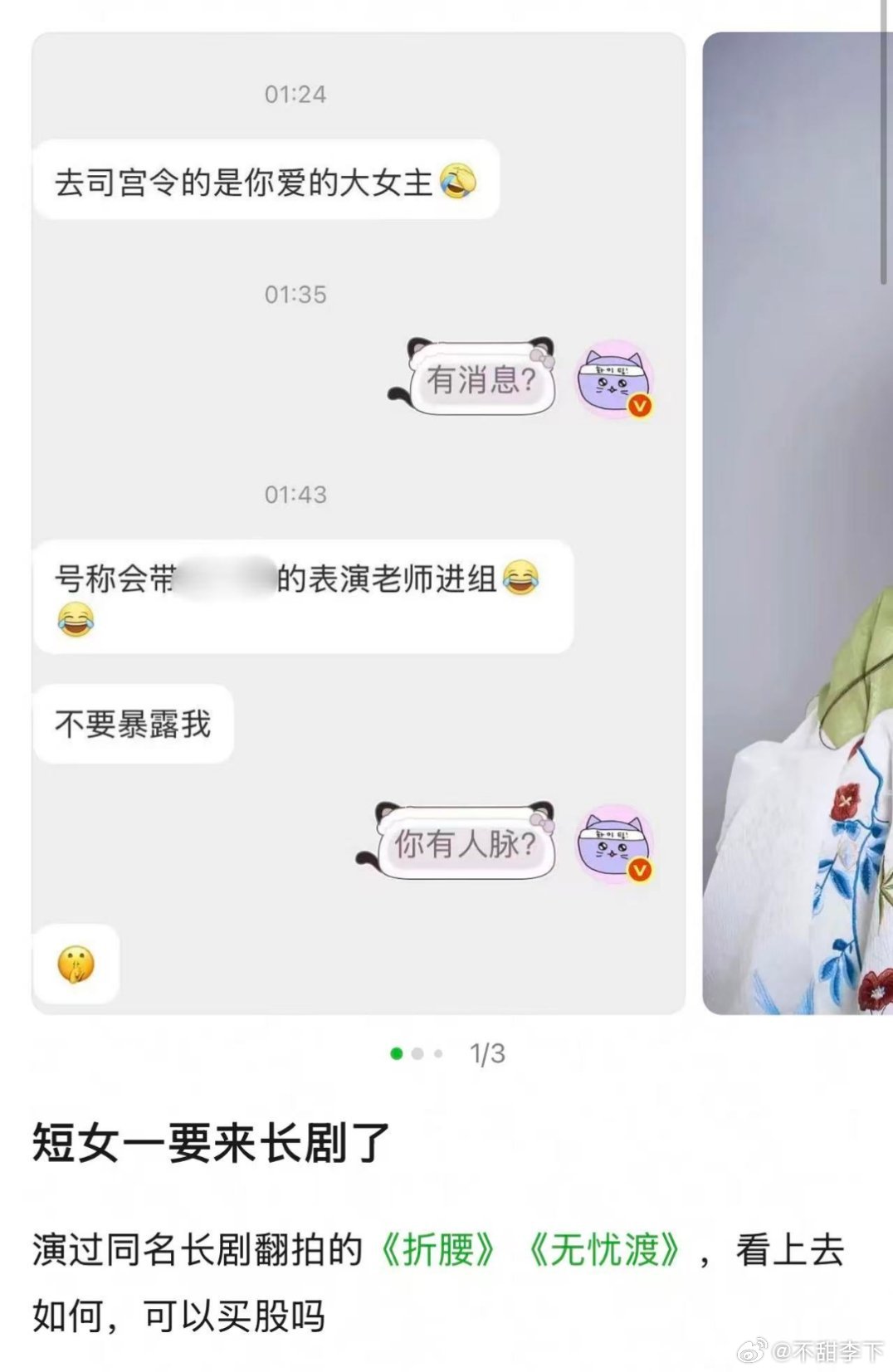 这个短女岳雨婷我感觉她挺会炒的,就是前几天时装周搞出自费风波那个短剧女星