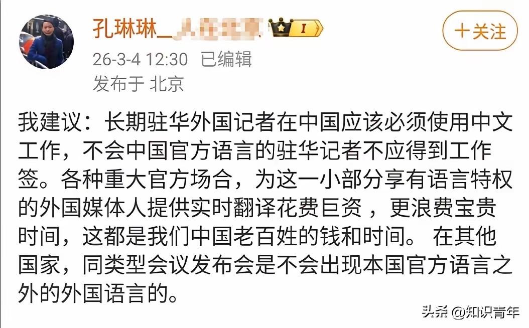 央视记者孔琳琳发文引发热议,起因是她在工作中发现,大量驻华的外国记者不会说中文,会说的工作场合也坚持不说,为了配合他们,召开会议时还要专门花钱请翻译。 她建议对长期驻华的外国记者要重点审核,没有考过中文等级的不发工作签证。咱们能做到的,凭什么这些外国人“搞特权”? 孔琳琳记者这话,确实说出了很多人的心里话,听着解气。咱们中国人去国外当记者,哪个不得拼命学当地语言?凭什么他们来中国,就能理直气壮地当“语言特权阶层”?这种不平衡感,非常真实,也值得重视。她的建议,核心是追求一种“对等”和“尊重”,这没毛病。 但咱们也得琢磨琢磨,这事儿是不是像表面看起来这么简单。外国驻华记者不会中文,情况可能分好几种。有些是常驻多年的“中国通”,故意不说,这属于态度问题,甚至有点傲慢,该批评。但也有很多是短期派驻的,可能就待一两年,跑突发新闻、做专题报道,任务重、时间紧,现学中文到流利程度,确实不现实。他们的报道,往往依赖本地助理、翻译或研究员。这算不算“特权”?更像是一种基于现实条件的“工作模式”。 话说回来,要求长期驻华的外华记者通过中文考试,这个想法在国际上并非没有先例。很多国家对外国人的工作签证都有语言门槛,比如加拿大、澳大利亚的技术移民。但具体到记者这个特殊行业,情况有点不同。记者工作的核心是信息传播和事实报道,语言是工具,但并非唯一工具。一个不会中文的记者,如果他的团队里有可靠的中文信息源和翻译,理论上也能完成报道。问题在于,这种“隔了一层”的报道,深度、准确性和对微妙语境的理解,会不会打折扣?答案是肯定的。很多对中国复杂社会的误读,就源于这种语言和文化上的隔膜。 那么,用行政手段设置语言门槛,是不是最好的解决办法?这需要权衡。好处很明显:能倒逼外国记者更深入地了解中国,减少因语言障碍产生的信息失真,也是一种文化自信的体现。但潜在的风险也得考虑:会不会因此吓跑一部分国际媒体,尤其是那些人力财力有限的中小媒体?导致驻华外国记者数量减少,来源单一,反而让国际舆论场关于中国的声音更集中、更可能被少数大型媒体垄断?这和我们希望看到的多元、客观的国际报道环境,是不是背道而驰了? 其实,比强制考试更重要的,或许是营造一种“预期”和环境。我们可以明确鼓励和提倡驻华记者学习中文,将其视为专业素养的一部分。各类新闻发布会、吹风会,可以更明确地以中文为主要工作语言,提供同传服务成为一种“补充”而非“默认”。让那些积极使用中文、努力理解中国语境的外国记者,在获取信息、接触采访资源上得到更多便利。这是一种柔性的、正向的激励。用市场和工作实际需求来引导,可能比一纸强制规定更有效,副作用也更小。 更深一层看,这场讨论反映了一个更大的议题:中国在国际话语体系中的位置。当我们从过去的“被叙述者”,逐渐成长为积极的“叙述者”时,我们自然希望参与叙述的各方,都能遵守更公平的规则,付出同等的努力。要求语言对等,是这种诉求的一个具体表现。但构建话语权,不仅仅在于设定门槛,更在于我们能否提供足够有吸引力、有价值的信息源,能否培养出真正理解中国、能用世界听得懂的语言讲述中国故事的国际传播人才。这既包括会外语的中国记者,也包括懂中文的外国记者。 所以,孔琳琳记者的发声,是一个很好的起点。它提醒我们关注这个长期存在的“不对等”。解决方案,或许可以更灵活、更有层次。对于真正想深耕中国、做深度报道的长期驻华记者,提出一定的中文能力要求,合情合理。对于广大的新闻从业者,则通过创造环境,鼓励他们迈出学习中文、贴近中国社会的第一步。最终目的,不是为了卡住谁,而是为了更真实、更深入、更少误解的交流与报道。 各位读者你们怎么看?欢迎在评论区讨论。