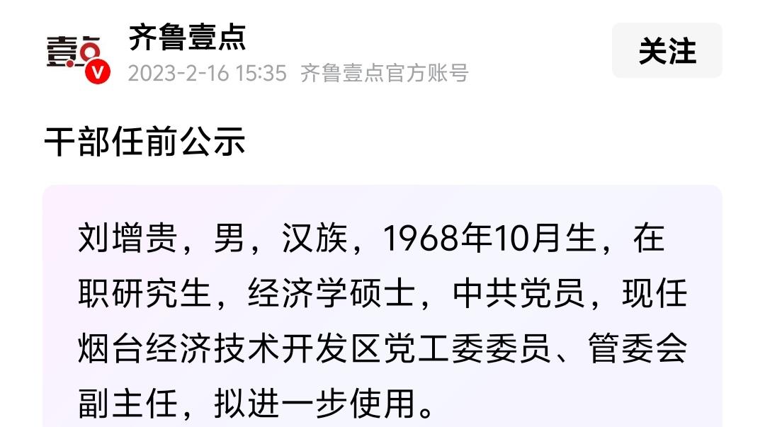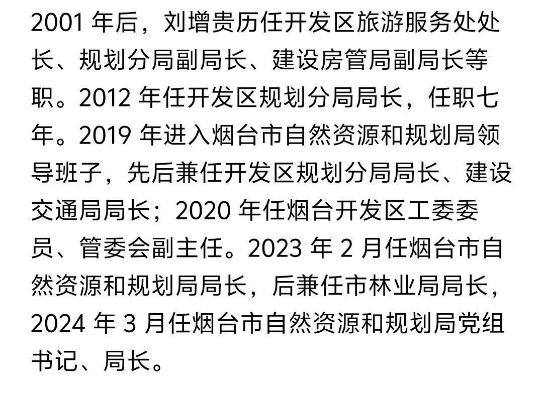 刘增贵因涉嫌严重违法违纪被查,这应该是一个大新闻或者说是一个讯号,毕竟刘增贵2023年才担任市自然资源和规划局局长,此前20多年他一直在烟台开发区工作,长期也是在开发区规划建设部门工作一直做到烟台市开发区管委副主任,再到晋升为市自然资源和规划局局长不到3年被查! 还是之前观点,这几年烟台反腐工作的确是做出了成绩,一些腐败分子纷纷被查落马!