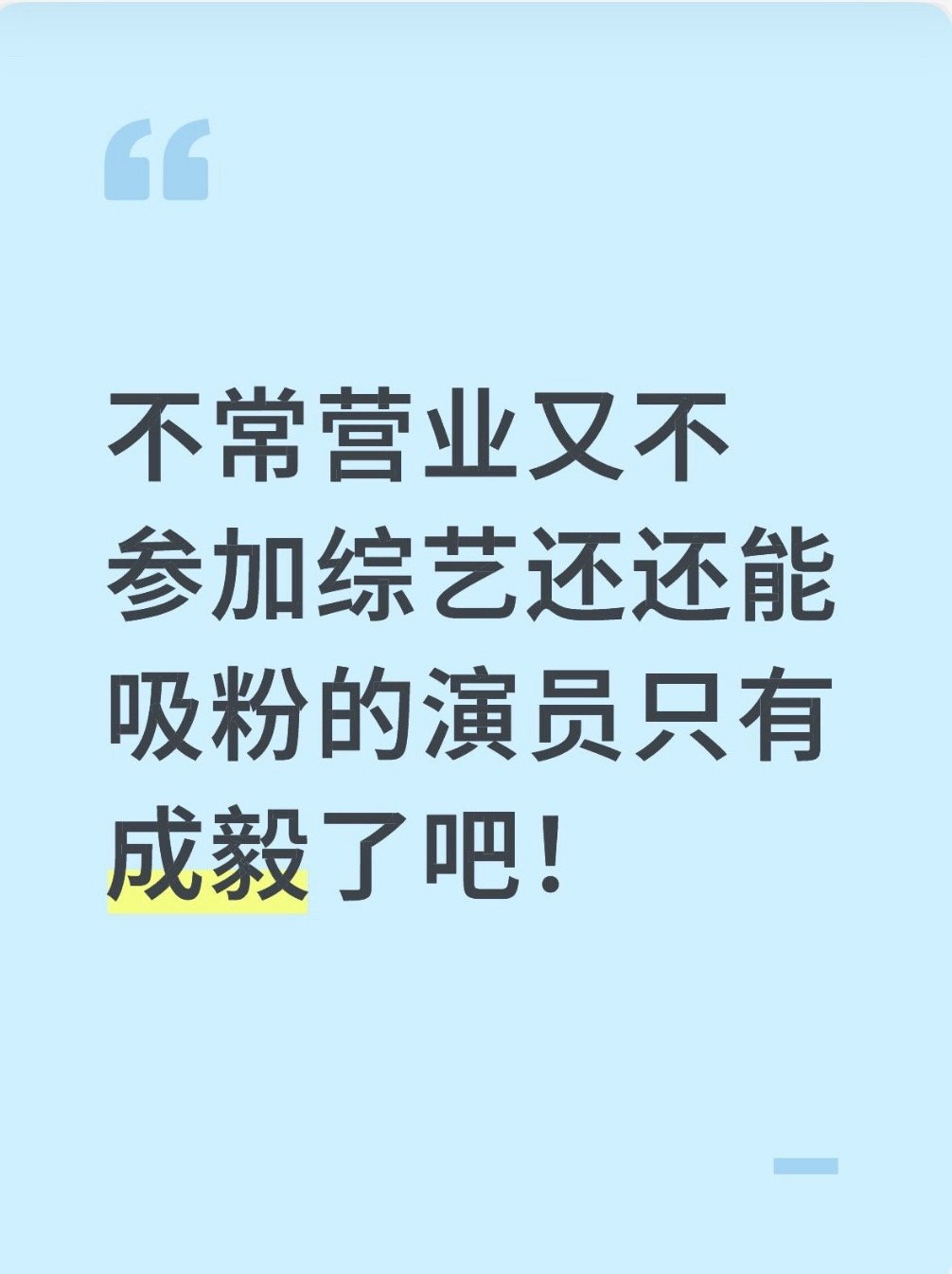 确实,既不营业又不刷综艺还能吸粉的演员就他一个。成毅一拍完戏就隐身,哪哪都找不到