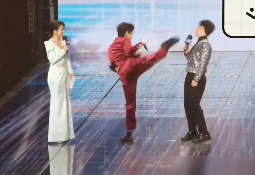 皮鞋底离眼球只有三厘米,一阵冷风贴着头皮直接刮过去。你要是台上那个主持人,当场就能吓出一身冷汗。 就在前一秒,百克力还笑眯眯地夸向佐穿丝绒西装打拳真帅。话音没落,向佐猛地拔地而起,一条长腿直接奔着人家太阳穴横扫过来。没有提前沟通,没留半点安全距离,百克力出于求生本能死命往后一折脖子,整张脸瞬间抽搐走形。 事后向佐跑到评论区连敲一百个对不起。百克力赶紧拿高情商出来灭火,拍视频笑称自己只恼火了零点零一秒,紧接着顺水推舟约对方上播客。你肯定猜这又是一场事先安排好的吸流量双簧?网友的眼睛可揉不进沙子。 从前阵子乱扇别人耳光,到今天把脚尖怼到搭档脸上,向佐硬是把没分寸演成了抽象人设。他总觉得一次次试探底线能换来全网狂欢,却不知道看客们早就烦透了这种拿安全抖机灵的惊悚戏码。 真正的真性情,不是拿别人的脑门当秀场,而是懂得克制守规矩;真正的真功夫,不是在聚光灯下耍威风,而是管住那条伤人的腿。