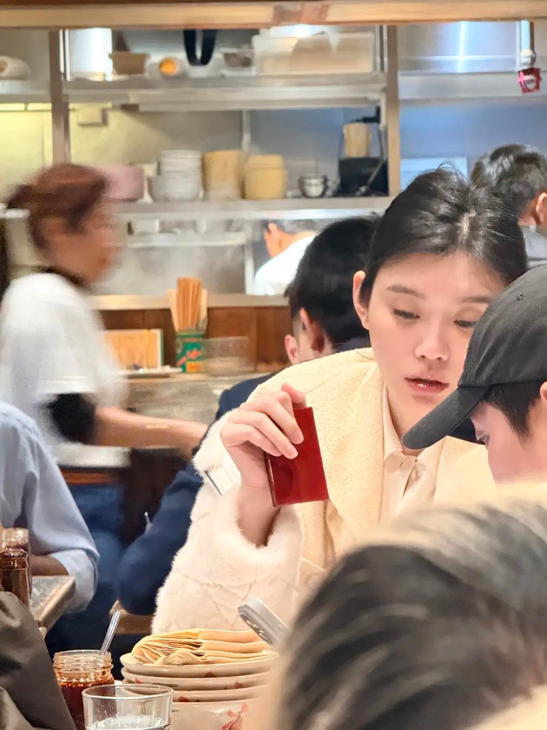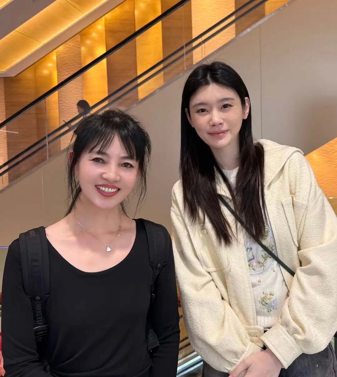 46岁秦岚在宁波一家餐馆吃饭,和老板一起拍摄合影。她看起来好年轻,身材太好了!