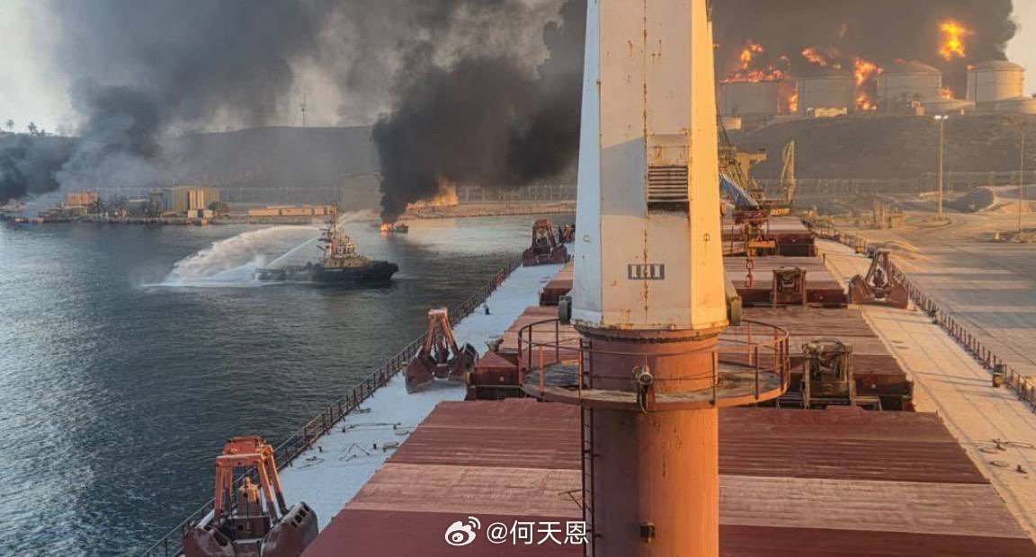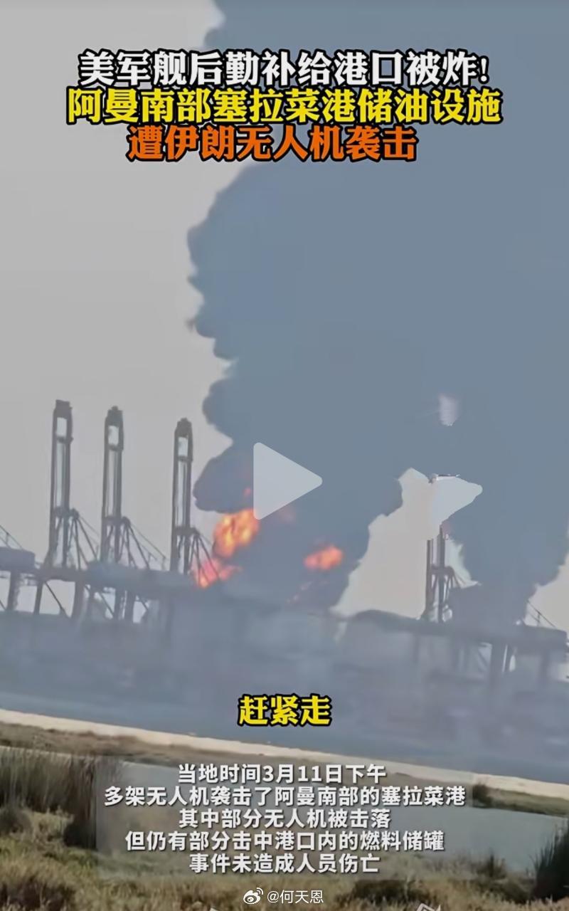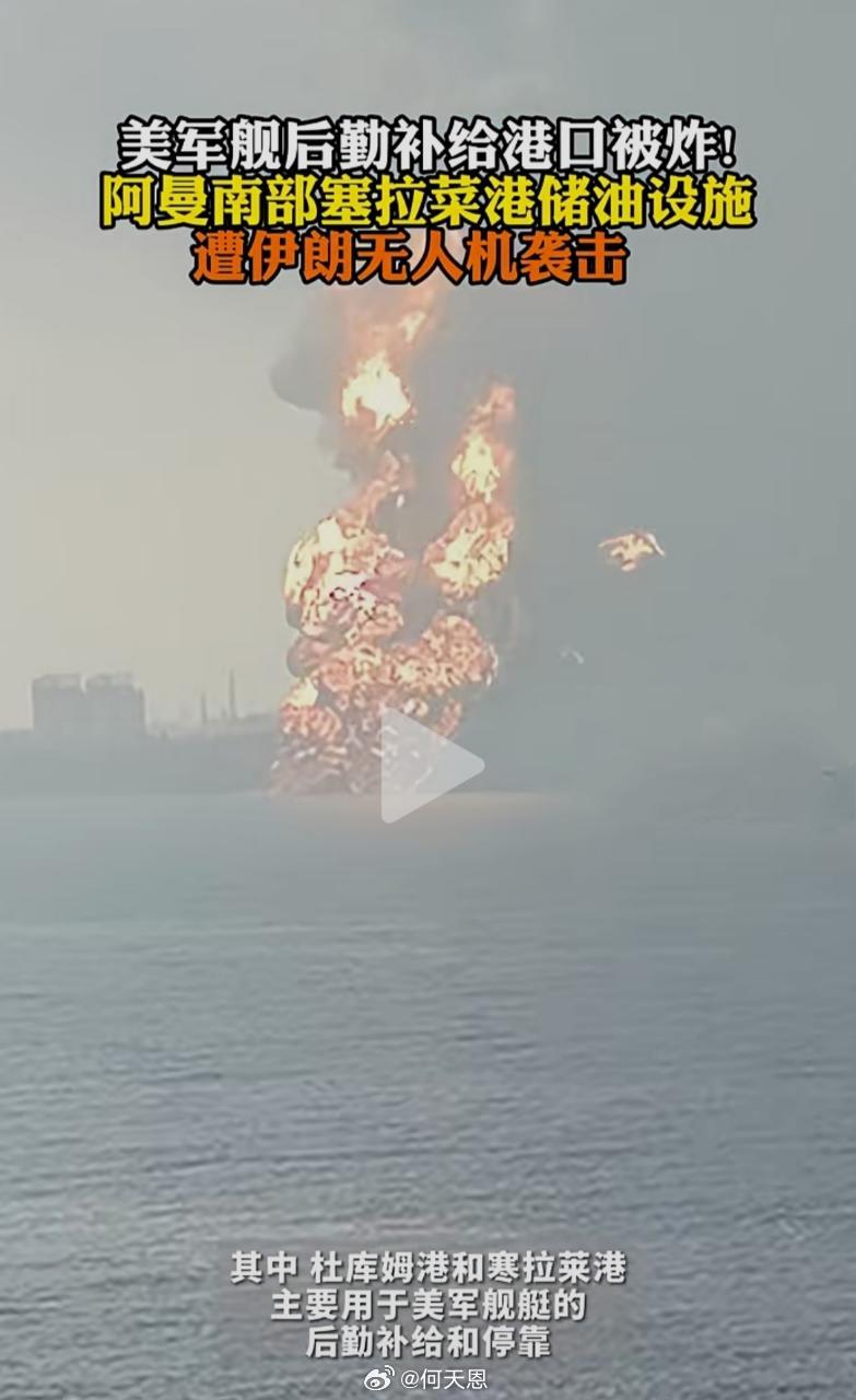 美军舰重要后勤补给港口被伊朗炸了。