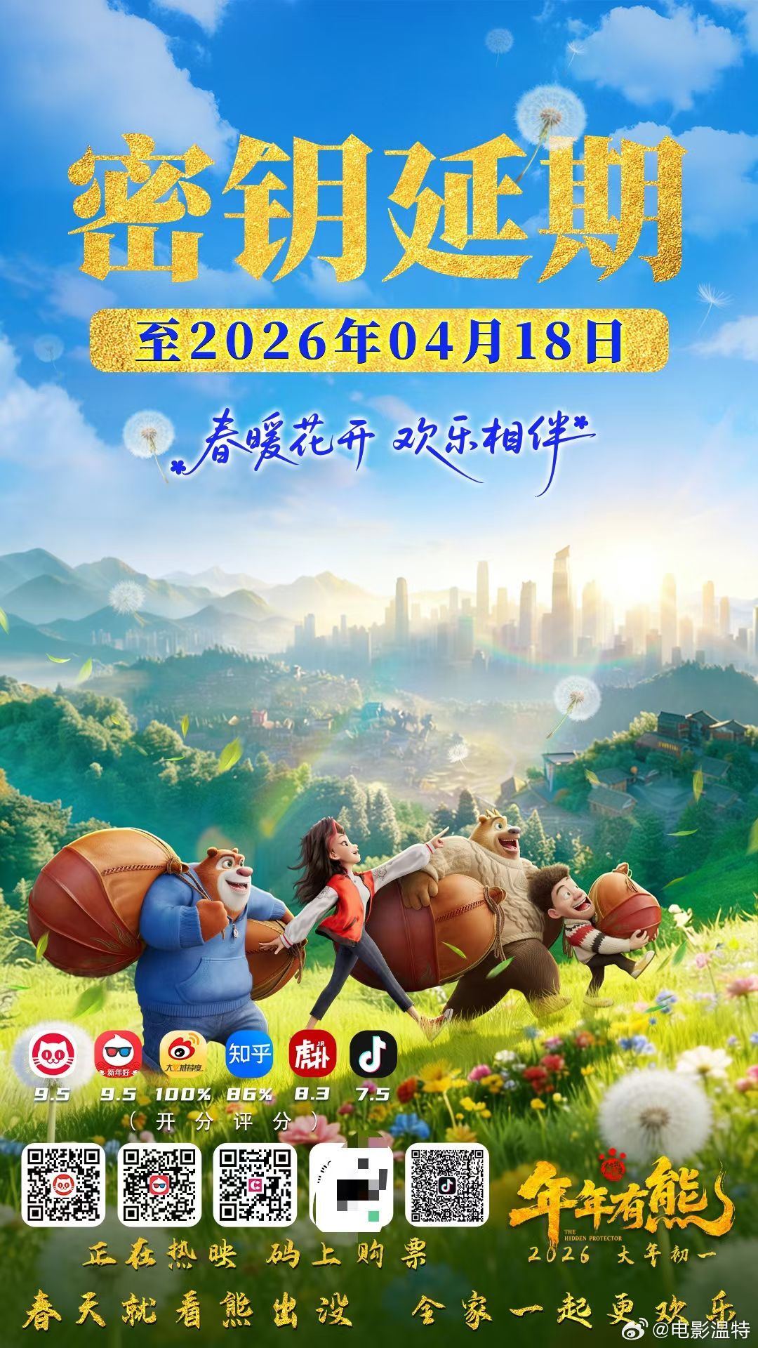听听温特怎么说春节档电影《熊出没:年年有熊》密钥延期至4月18日,目前累计票房