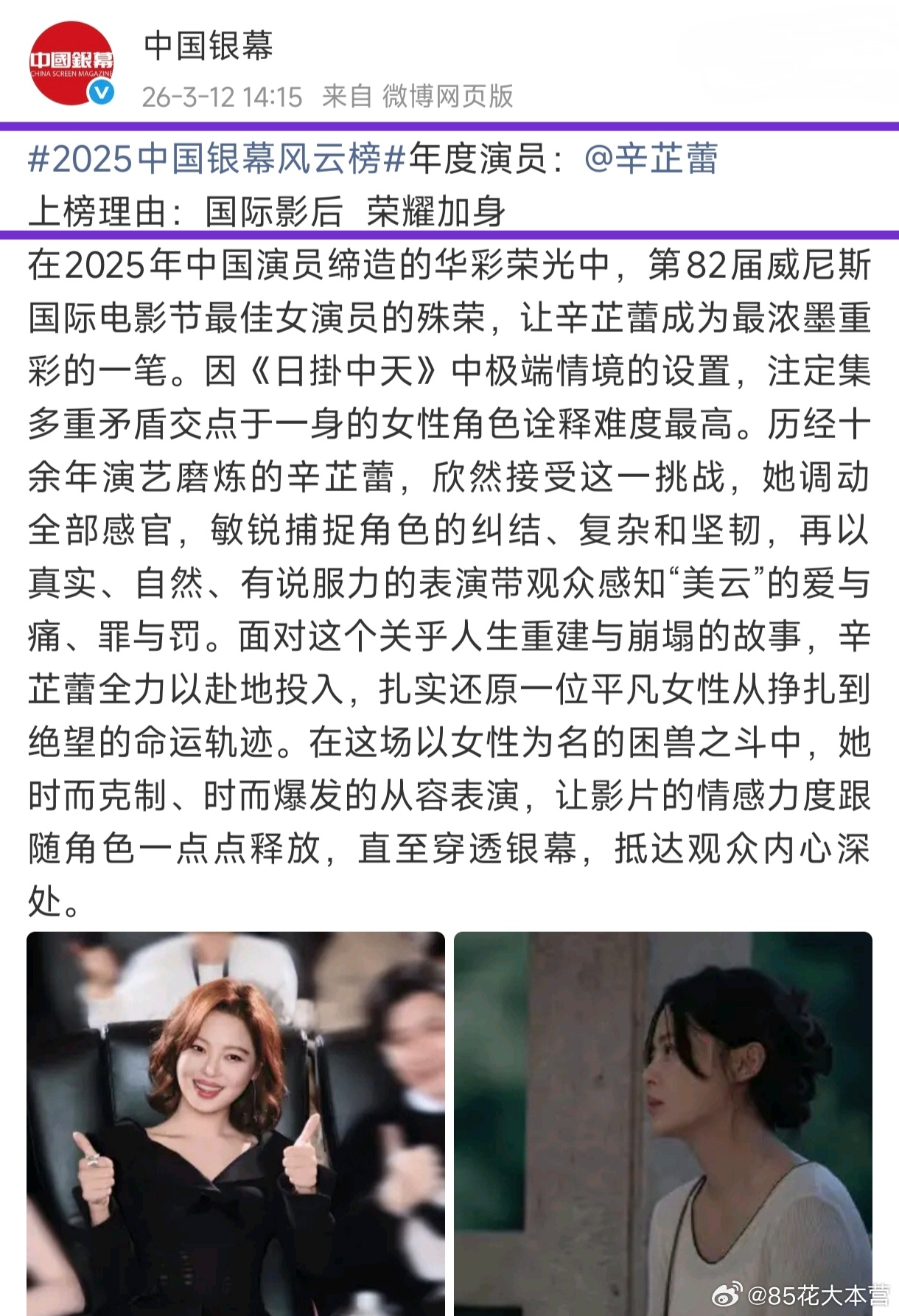 辛芷蕾年度演员|年度演员的封面年度风尚人物|本刊年度风尚女王2025中国银幕风云榜