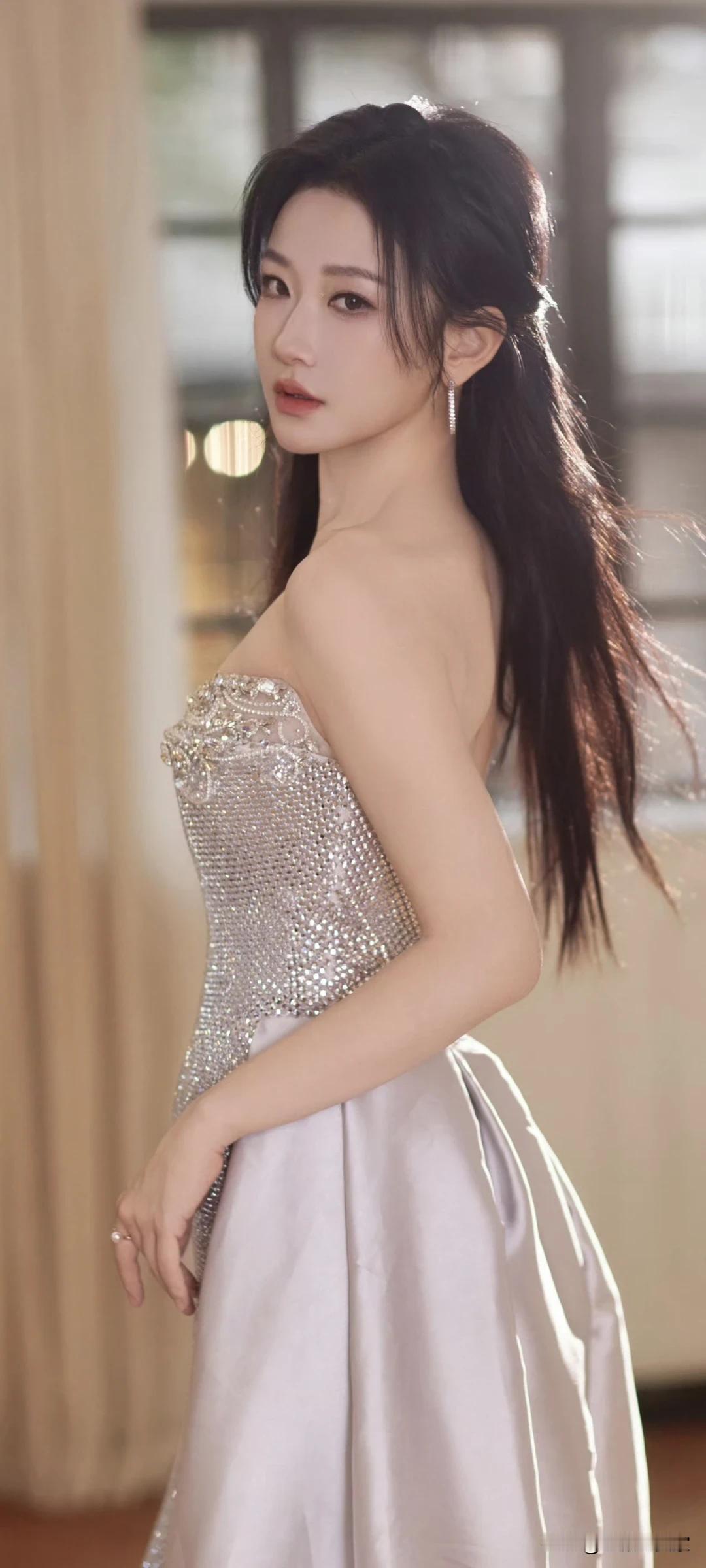 王小亿壁纸~优雅永不过时!紫色抹胸裙搭配花饰发型,美得让人说不出话。