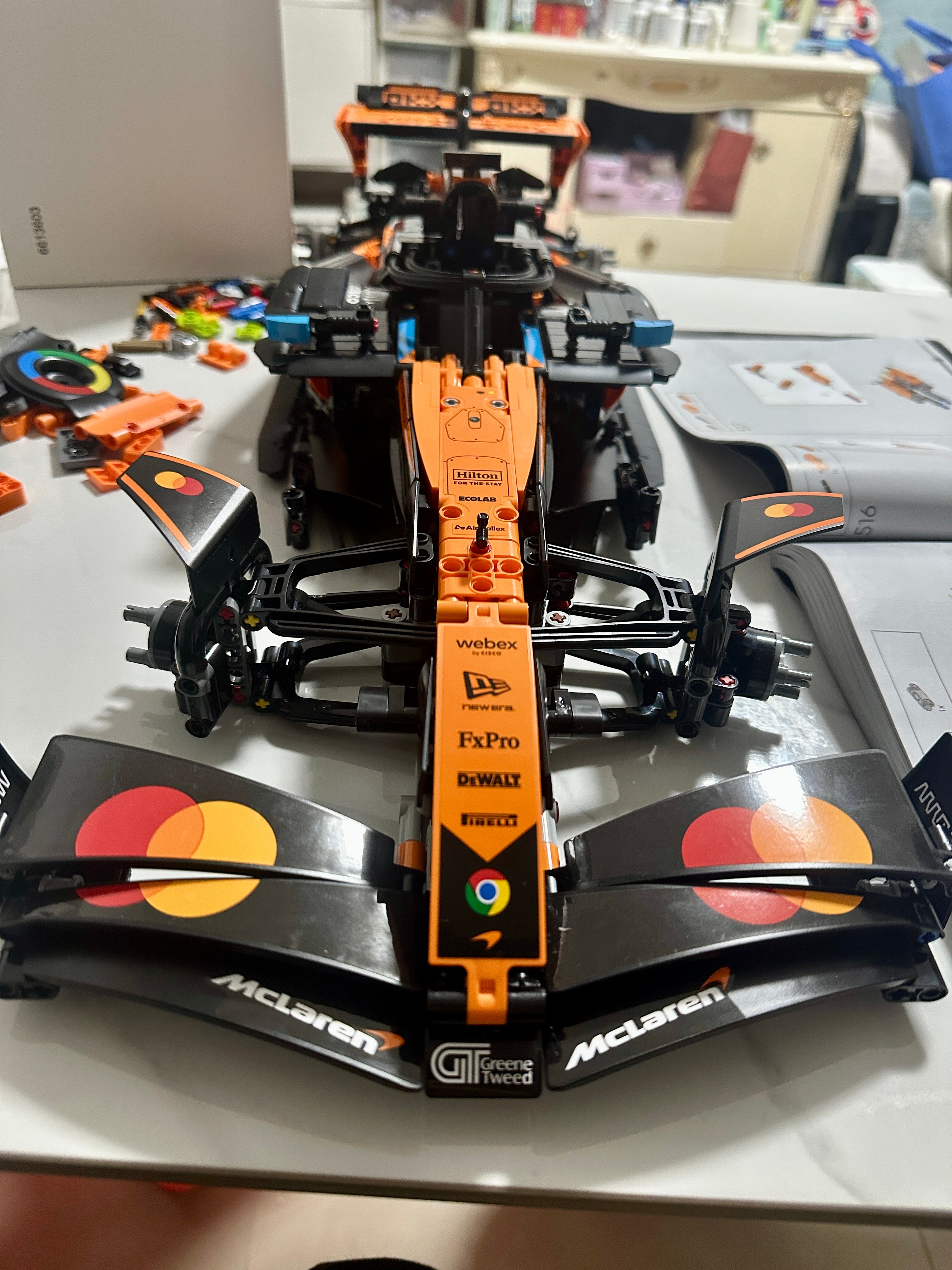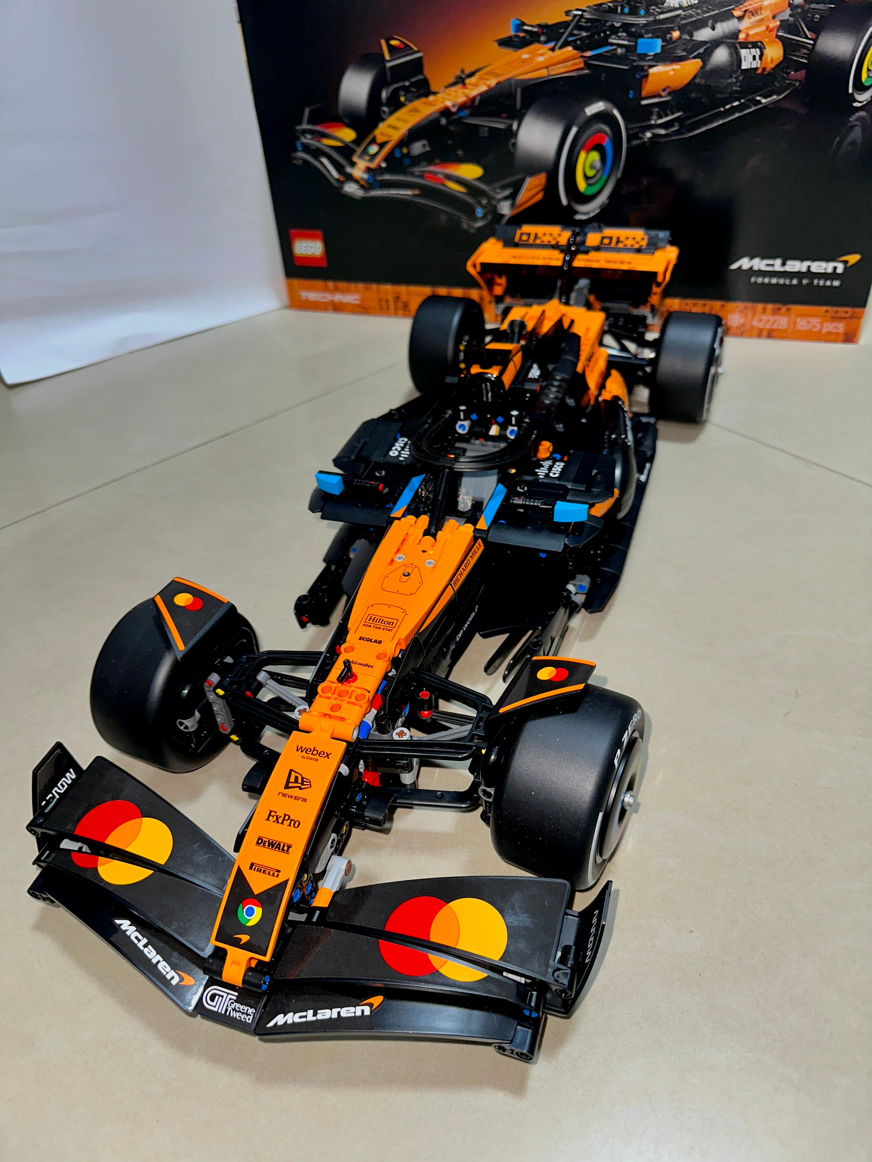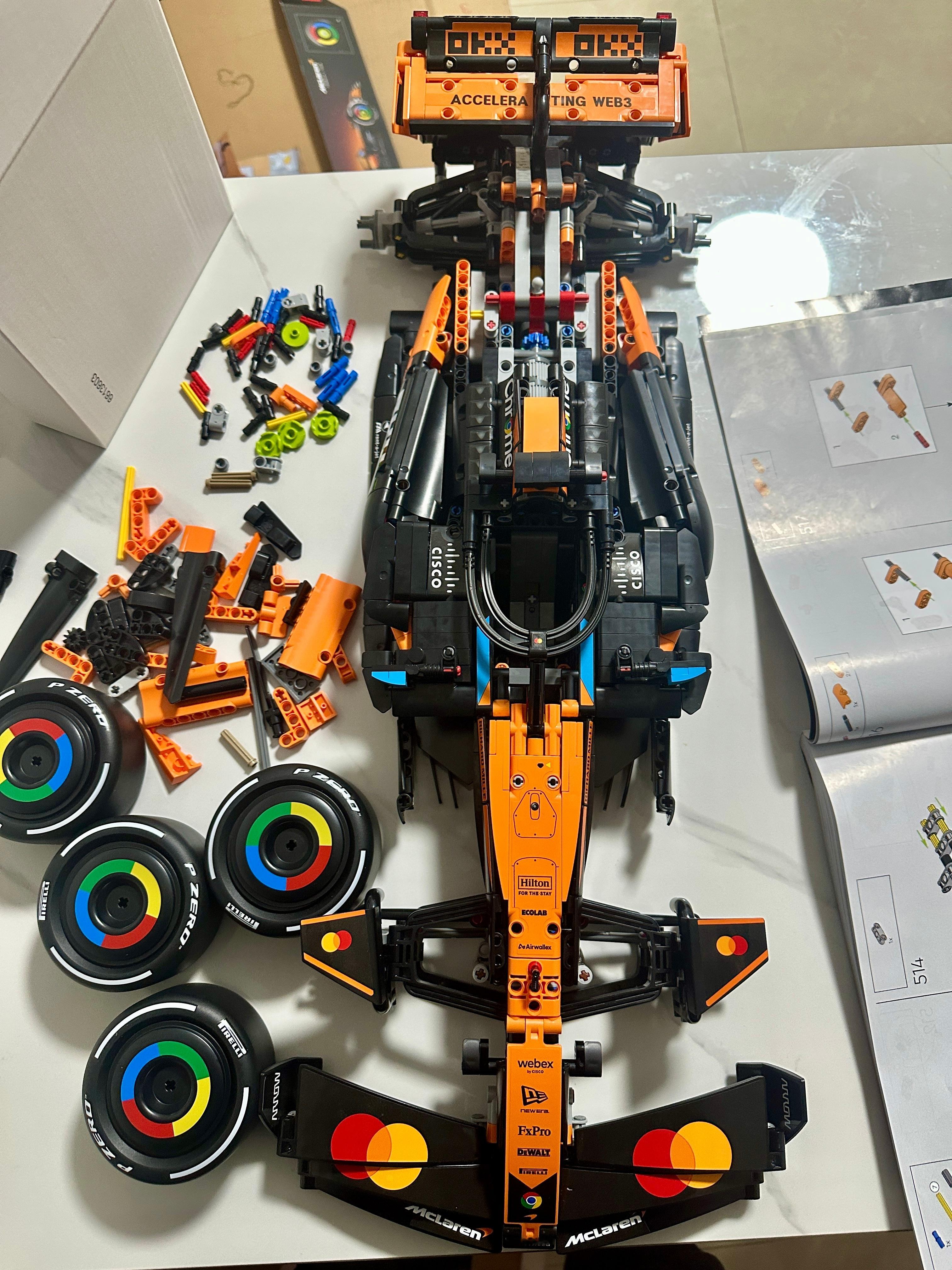 正值2026年F1新赛季,本周恰逢中国大奖赛,很开心收到了2025赛季迈凯伦冠军车型的乐高F1赛车积木——42228 迈凯伦F1®车队 MCL39赛车。刚开始看到1675粒的积木数量,确实吓了一跳,担心拼不完。结果断断续续花了四五个晚上加一个下午就拼好了,过程非常享受。拼装时,女儿也抢着要参与,连平时对车不感兴趣的内人也加入了进来。这款1:8还原的赛车采用经典木瓜橙配色,转向系统、悬挂系统和DRS都可以动起来,仿佛一台鲜活的赛车!整体感觉难度不大,细节满分。我已经在考虑要不要收集齐一整套了。乐高品牌乐高积木乐高F1粉丝太拼了老纪侃车 上海·上海国际赛车场
