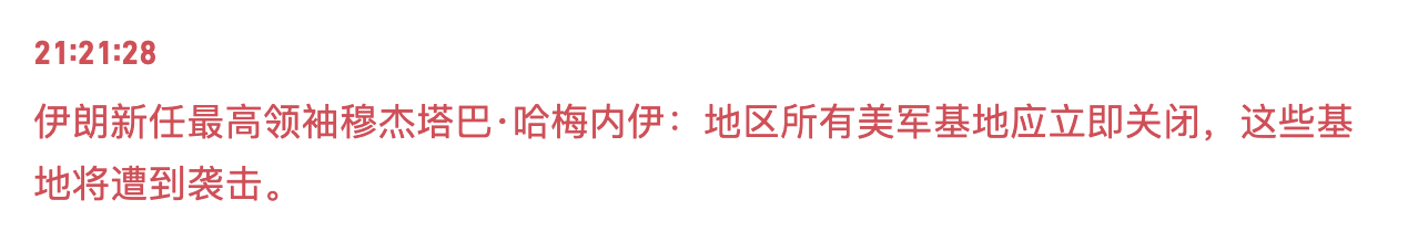 考虑到他们也是头一回让我看到真有人敢打美军基地的,也算合理了。伊朗最高领袖公开声明美伊以冲突