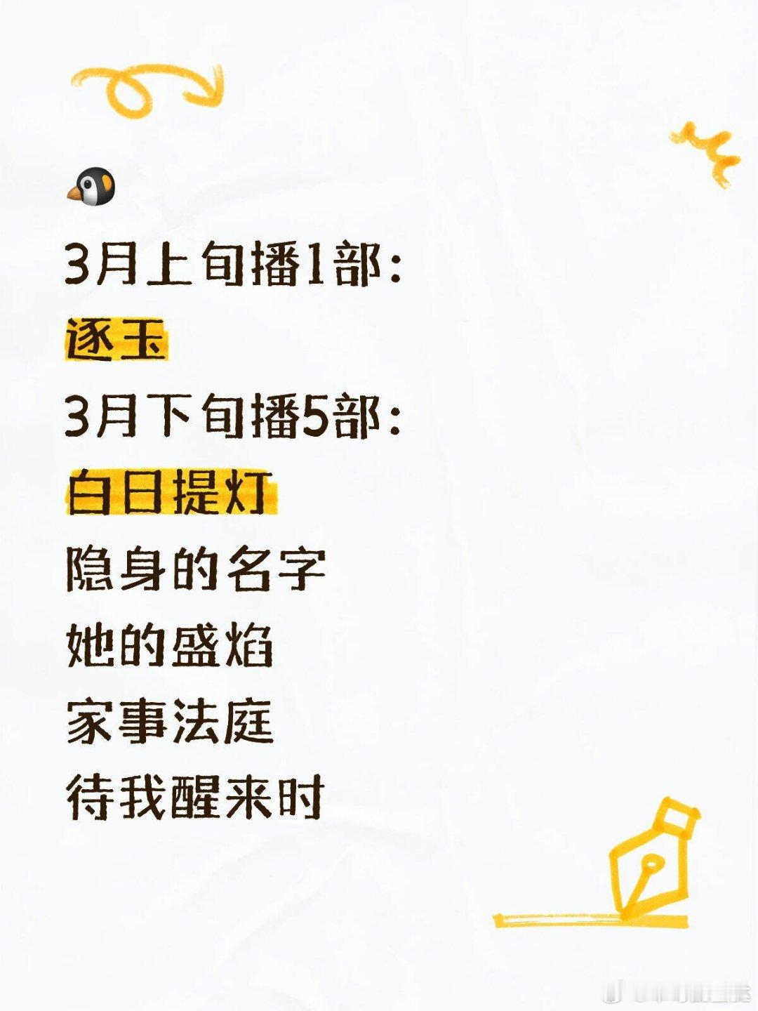 3-5月各平台排播已出🥰你最期待哪一个平台3-5月暂定排播她的盛焰3.13叵测