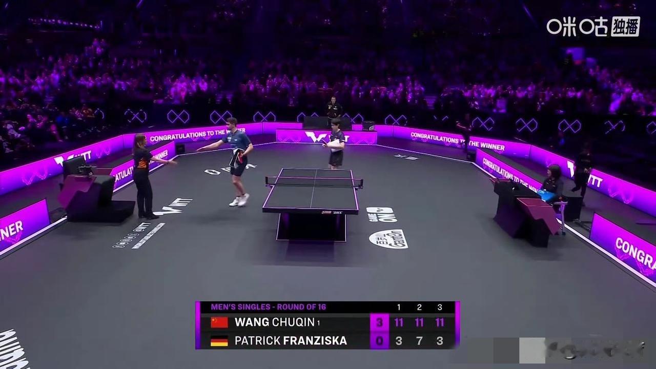 怎么感觉队长弗朗西斯卡一碰到大头,就不会打球了呢? 光看比分就是一边倒:11-3、11-7、11-3,王楚钦3-0轻松拿下! 18分钟光速下班,全程碾压没悬念