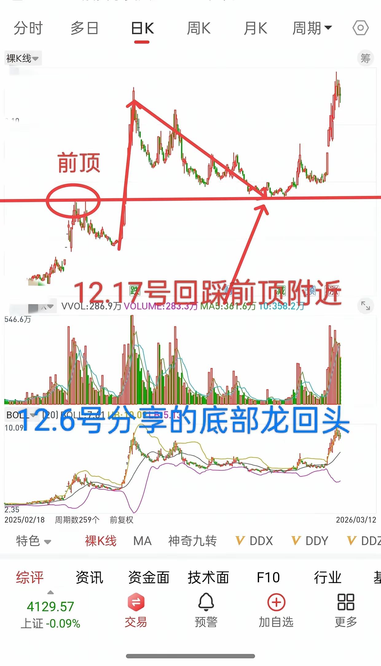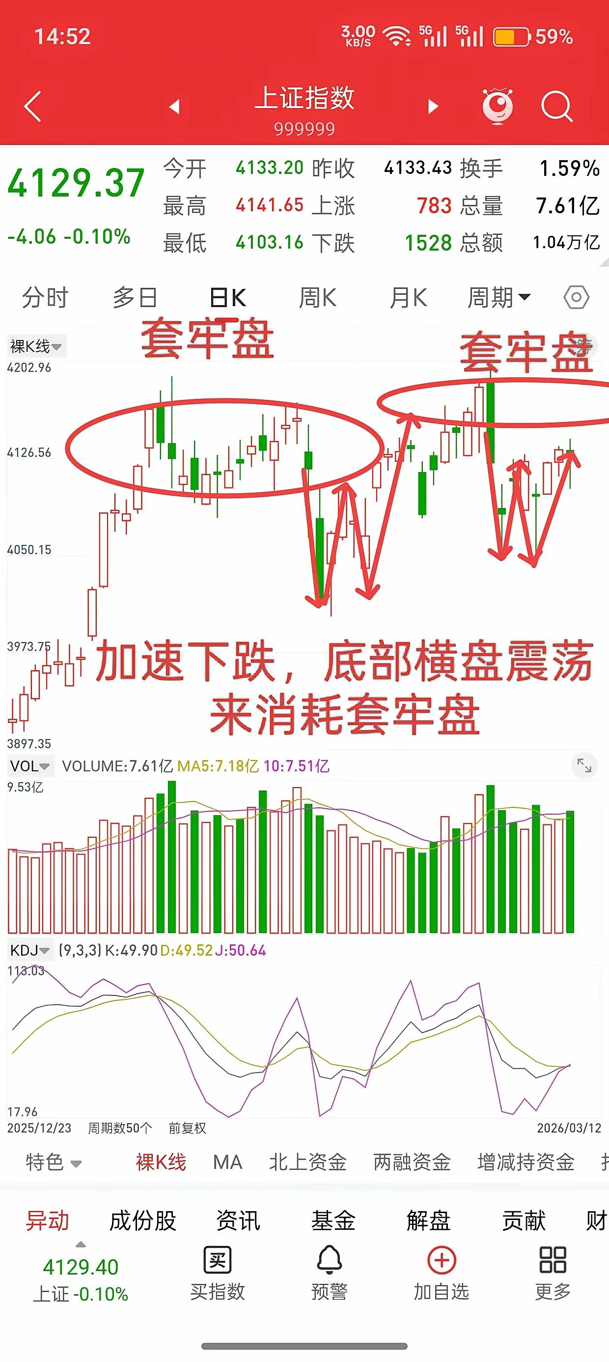 今天A股缩量探底回升,不少人又开始犯嘀咕:这到底是跌不动了,还是暴风雨前的平静? 说个实在话,现在大盘上方的套牢盘真不算多。你去看那些横盘震荡的板块,K线图上密密麻麻的成交区主要集中在低位,高位筹码稀稀拉拉的。这种时候的洗盘、震荡,说白了就是主力在磨耐心,把那些拿不住的散户震出去,为后面拉升腾地方。 为啥2月二三号大跌到4050附近时,敢让大家抄底?看的就是前顶位置。前顶没破,意味着上面没多少套牢盘,主力砸下去不是真出货,就是借恐慌洗盘。这就跟小区门口的超市促销似的,先把价标得高高的,再猛打折扣,其实根本没亏多少,就是想让你觉得占了便宜赶紧下手。 再看那些每周六提的底部龙回头股,不少能走出第二波主升,核心也在这儿——靠近前顶但没破,上方没压力,主力稍微用点力就能拉起来。要是前顶被捅破了,情况就变了,上面全是套牢盘,就像堵车时前面排了百十米的车,想往前挪一步都难,筑底时间肯定得拉长。 现在的关键就是看关键位置的博弈。你想啊,投入10块可能赚20,和投入10块最多赚5块,肯定选前者。前顶不破,就是前者,胜率高、盈亏比划算;破了,就得换成后者,犯不着冒险。 普通散户别总盯着分时图一惊一乍,多看看筹码分布。上面没多少套牢盘的,耐心拿住比瞎折腾强。真等哪天放量突破了,再追可能就晚了。市场从来都是磨出来的机会,急不来。