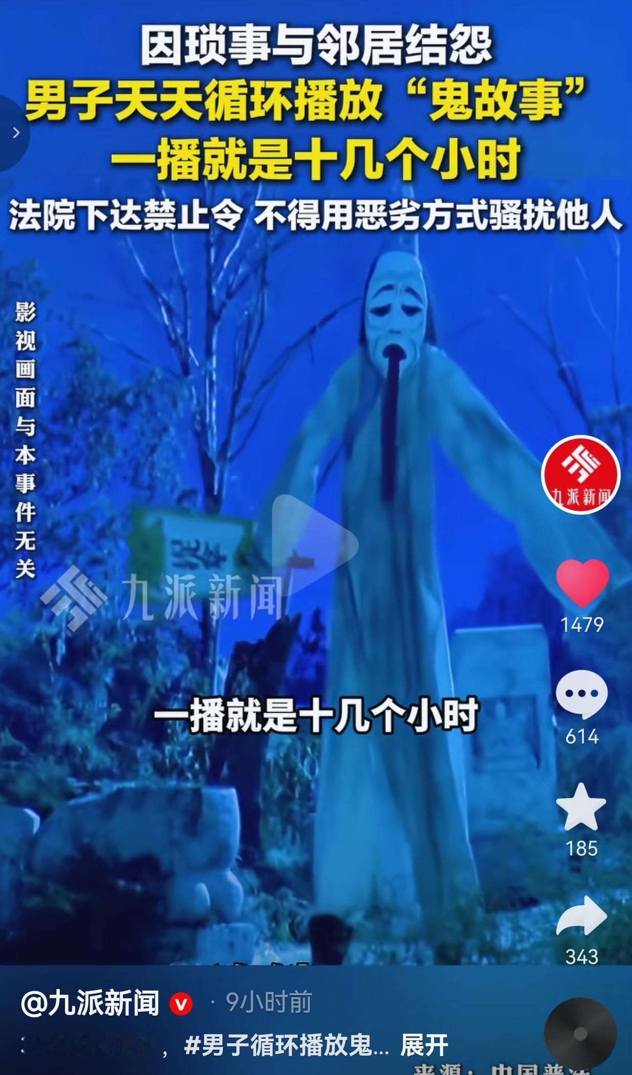 真的是太缺德!男子因琐事跟邻居发生矛盾,为报复邻居,男子竟然天天循环放“鬼故事”,这一播就是十几个小时,就连高考娃都没法复习! 看到这个新闻,真的是气得牙都痒了!这不仅仅是邻里矛盾,简直是往人心里扎刀子啊! 就因为一点鸡毛蒜皮的小事结了怨,这男的居然想出这么阴损的招——用喇叭循环播放“荒山野鬼”的恐怖音频,虽说音量没超标,但架不住一天十几个小时连轴转啊! 楼上邻居家有个马上要高考的孩子,本来就紧张得睡不着,这下倒好,大白天都能听见鬼哭狼嚎,晚上更是吓得不敢闭眼,书根本看不进去,复习全毁了。换谁能忍?这不是欺负人是什么? 更气人的是,他还觉得自己没做错,音量没超标就不算扰民?可这是精神骚扰啊!比噪音更折磨人,是往人骨子里渗的恐惧和烦躁。 后来,邻居实在忍无可忍,直接把他告上了法院。 法院也干脆利落,迅速下达了禁止令:责令这名男子立即停止播放扰民音频,不得再用这种恶劣方式骚扰他人。 看到法官上门送达文书、男子低头签收的画面,我才松了口气,总算有人治得了这种“恶邻”了! 评论区直接炸锅了,网友们的吐槽全是大实话:“这哪是放鬼故事,这是放催命符啊!高考娃要是考砸了,他赔得起吗?” 也有的网友说:“音量没超标就有理了?这是钻法律空子搞软暴力,太缺德了!” 还有的网友说:“幸好法院给力,这种恶邻就该治,不然谁都别想安生!” 我真的特别感慨,以前总说“远亲不如近邻”,可现在有些人为了点小事,把人心都磨凉了。报复解决不了问题,只会把小矛盾变成大仇恨,最后两败俱伤。 要我说,真正的体面,从来不是睚眦必报,而是得饶人处且饶人。你对别人多一分包容,别人才会对你多一分善意。 像这家人,明明可以坐下来好好谈,非要用这种下三滥的手段,最后丢了脸面,还落得个被法院禁止的下场,值得吗? 对此,你有什么看法呢?欢迎大家评论区讨论留言。