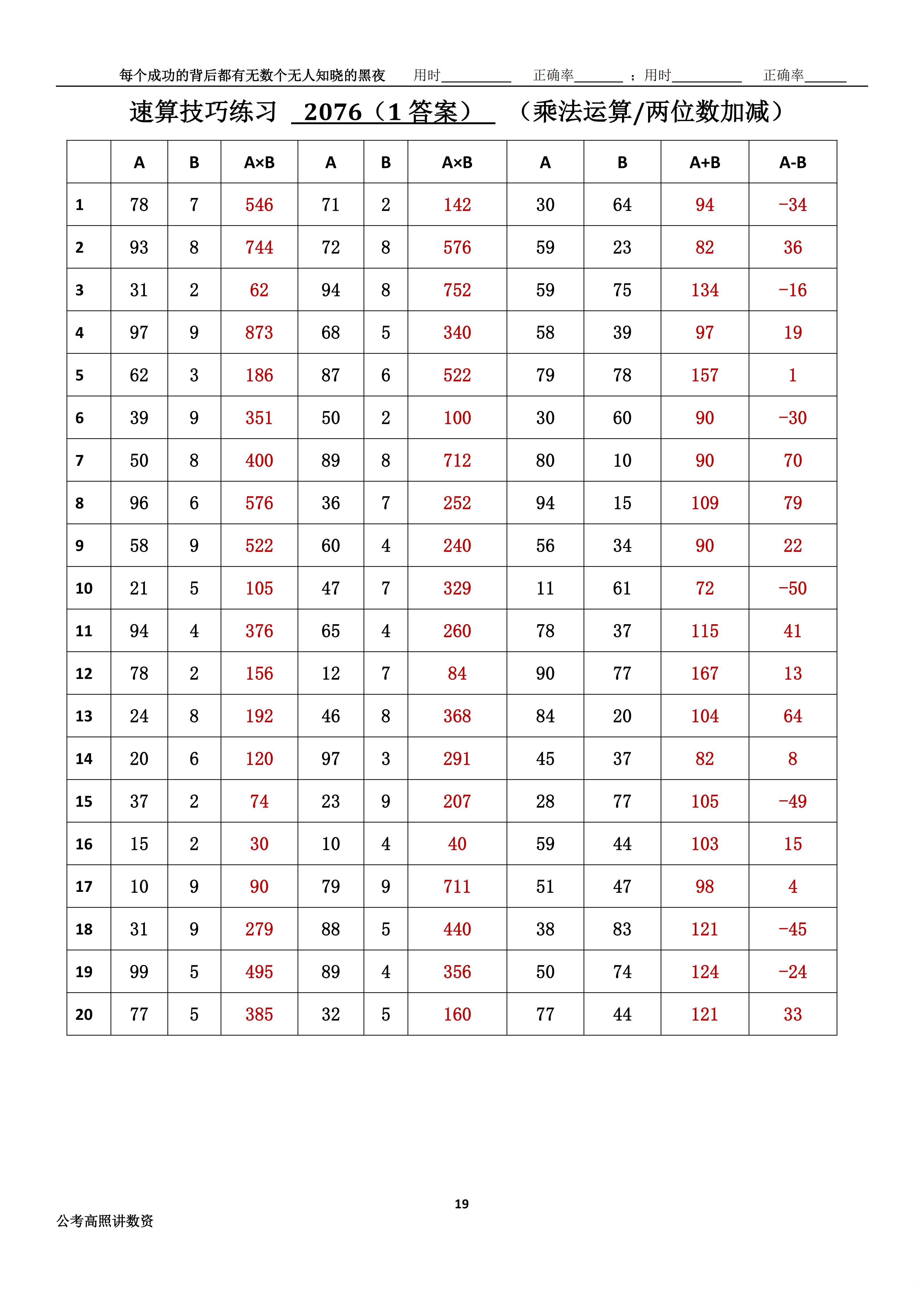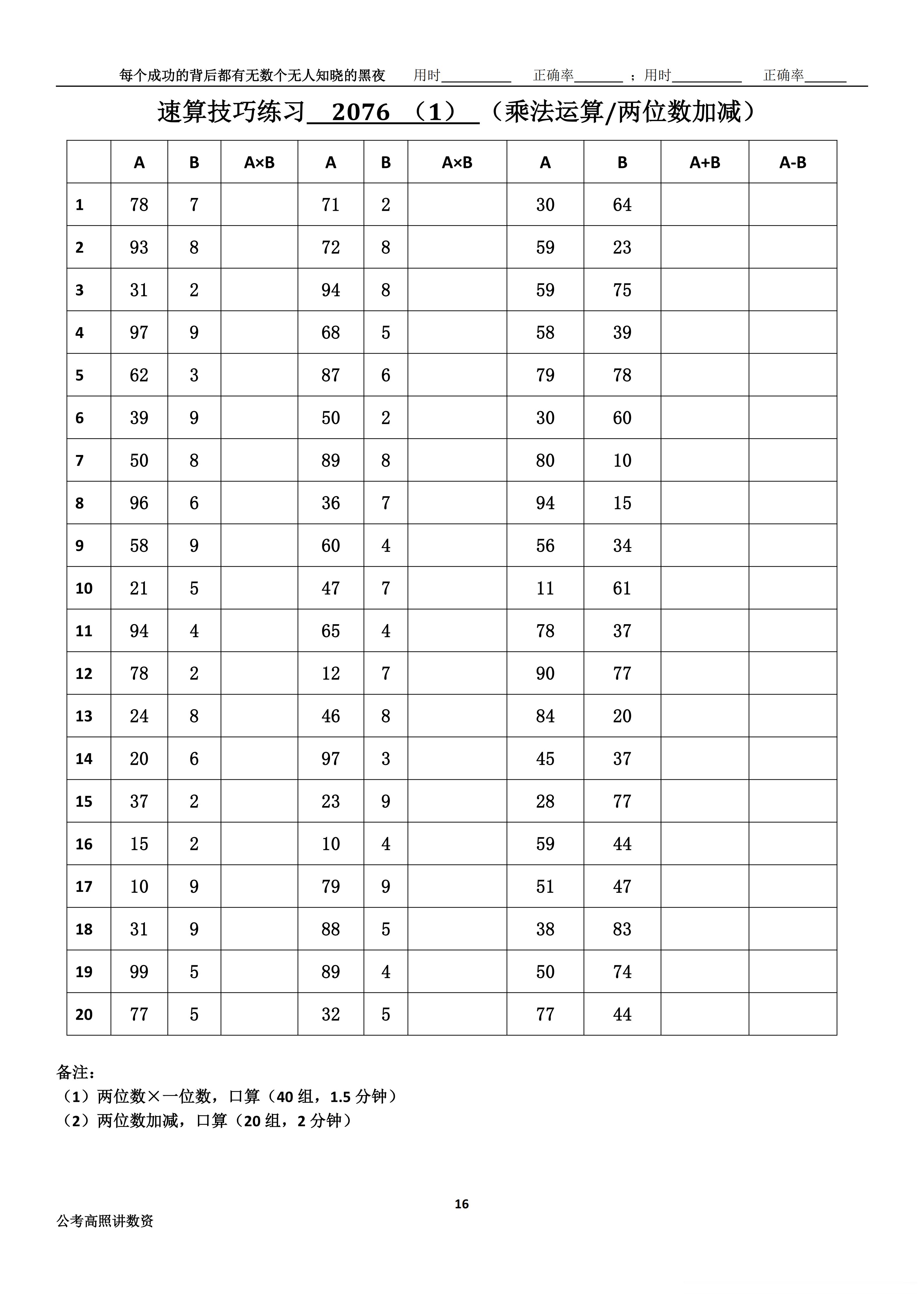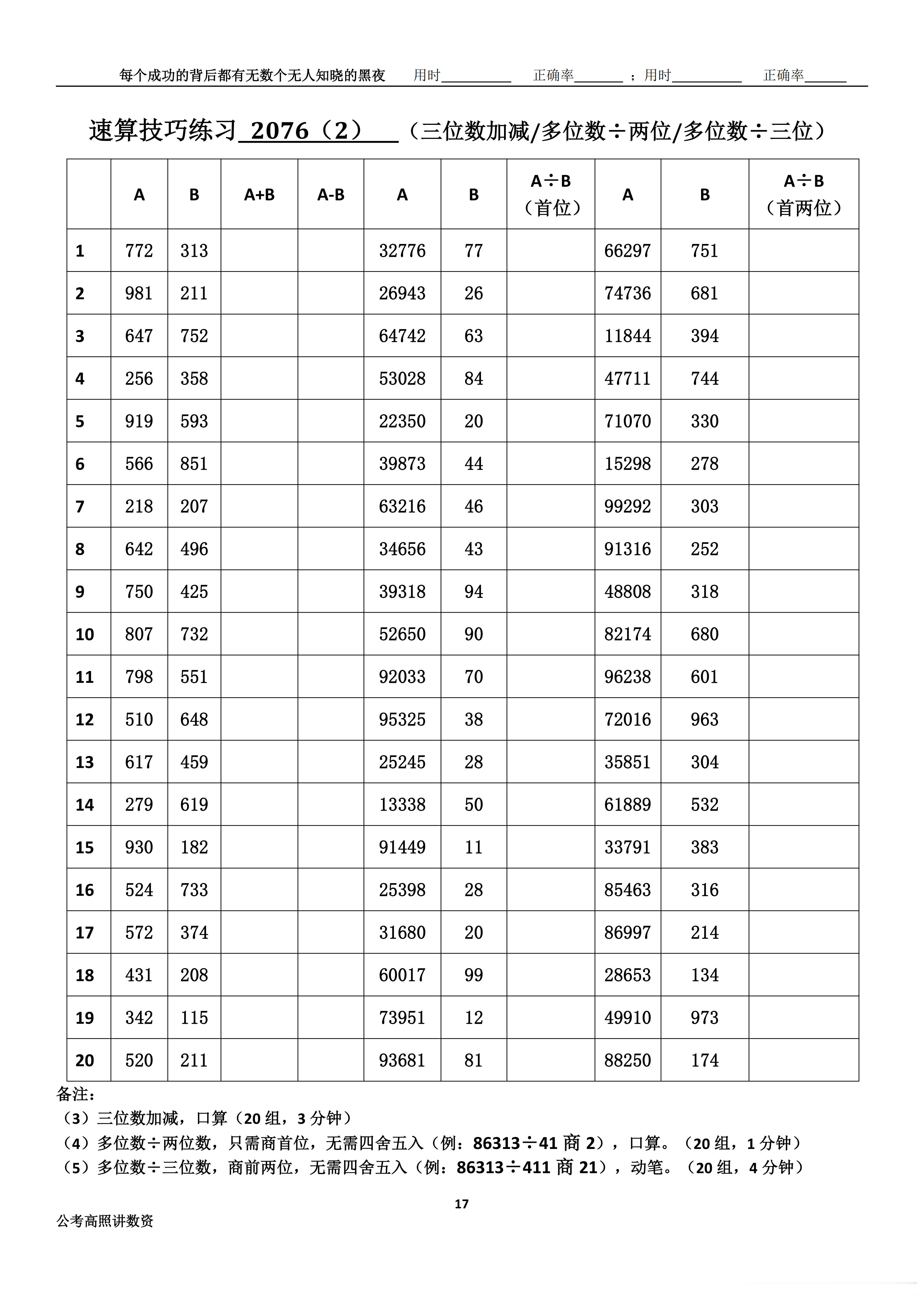 跟着高照练速算决战公考 速算练习2076
