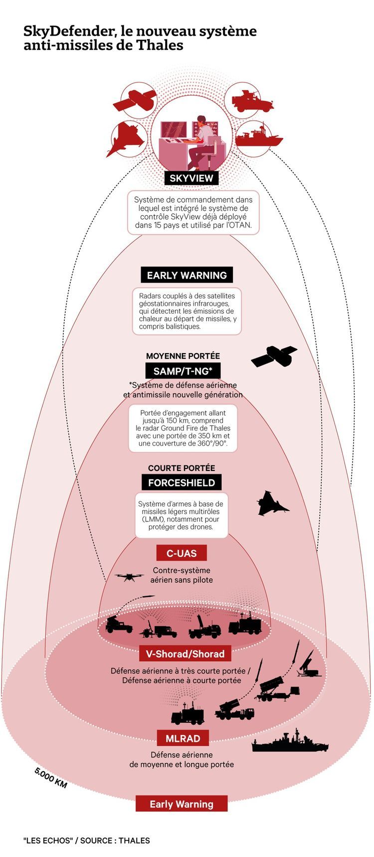 集成了包含UHF GA5000(基于法国🇫🇷军方的AURORE雷达系统开发)和SMART-L MM(泰利斯🇳🇱)等泰利斯公司的远程警戒雷达系统,“天空守卫者” 系统具备探测5,000km处目标的能力。