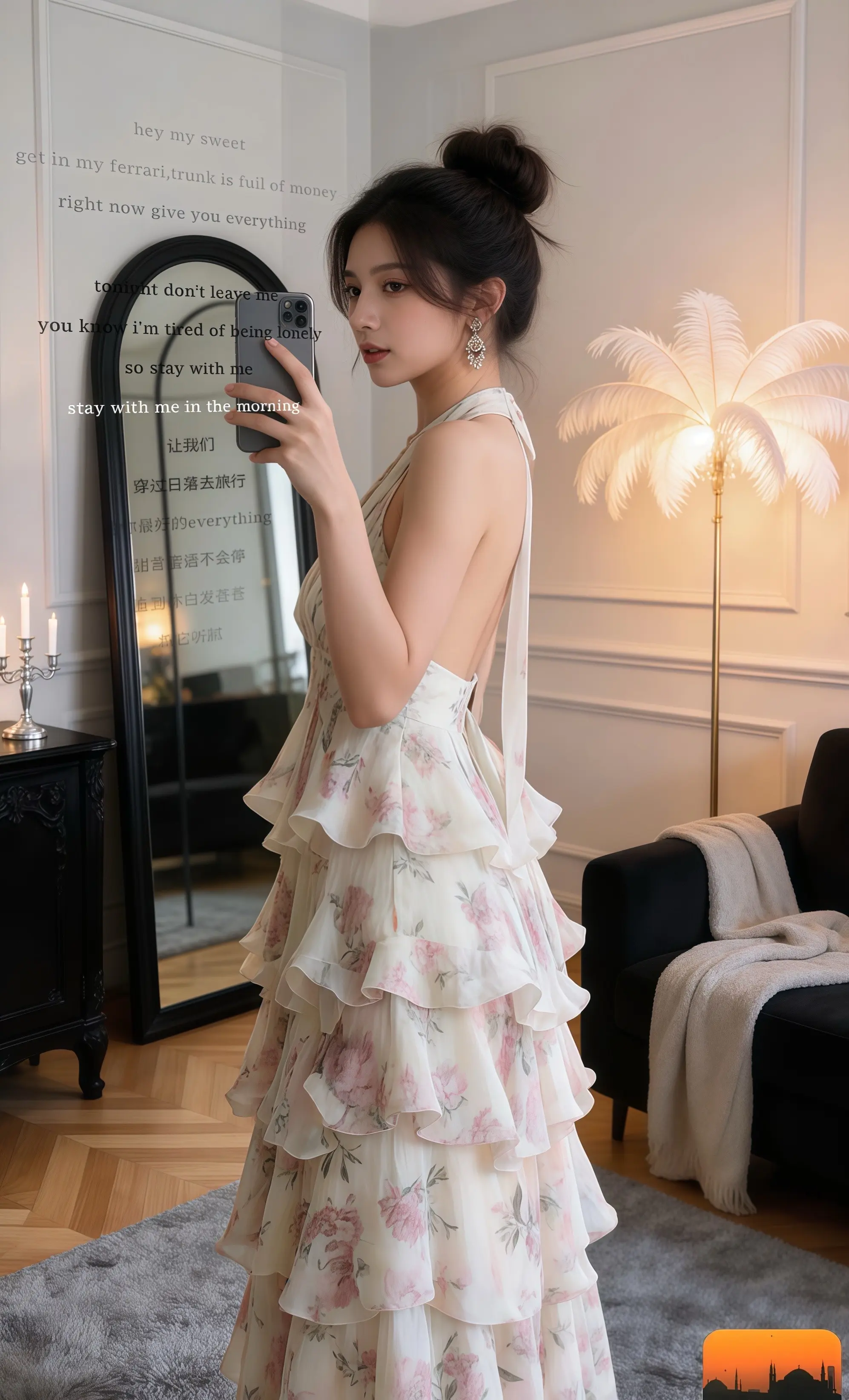 大S穿起粉粉嫩嫩、带花朵元素的少女连衣裙,特别自然舒服,完全没有违和感,自带一种