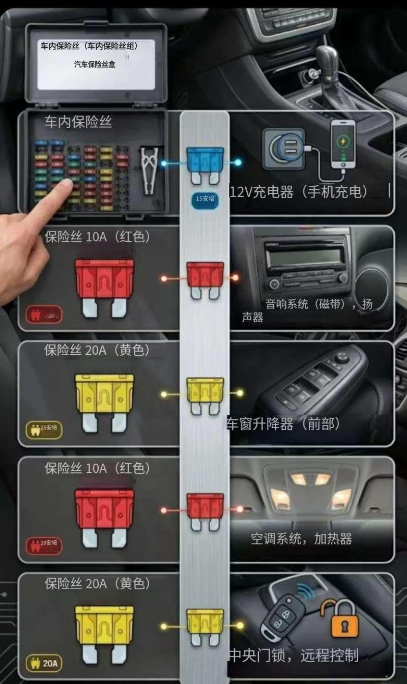 车灯不亮或点烟器坏了?别急着给电工送钱!🔧 车灯不亮或点烟器坏了?别急着给电工送钱! 我敢打赌,你肯定遇到过车里雨刮器、车窗升降器或心爱的收音机突然罢工的情况。第一反应多半是:“完了,这下要在路上修车了。” 但90%的情况里,解决问题只花几分钱,耗时刚好两分钟💡 问题就出在一个很小但至关重要的零件——烧断的保险丝。 在这组图里,我为大家整理了一份超直观、好用的车内和机舱保险丝速查手册(以福特福克斯为例,但原理适用于绝大多数车型)。 📍 赶紧把这篇帖子收藏起来!等你在高速上雨刮器突然失灵,或是手机充不上电时,你会感谢自己提前存了这张图。 ⚡️ 更换保险丝的黄金法则: 1️⃣ 颜色=额定电流:绝对不要装安培数更大的保险丝!如果红色10A的烧了,就只能换红色10A的;蓝色换蓝色(15A),黄色换黄色(20A)。 2️⃣ 绝对禁止“搭铜丝”:在烧断的保险丝上缠铜丝,会直接导致短路、线路烧毁甚至引发火灾🔥。 3️⃣ 使用专用工具:看看机舱保险丝盒的盖子下面——那里通常藏着专用的塑料镊子。别用螺丝刀抠,也别用指甲掰! 如果新保险丝一装上就烧断,说明电路存在短路,这时候就该拿万用表测一测,或者直接去维修店了。 👉 你的车最常烧的是哪一个保险丝?在评论区留下车型和问题,我们一起聊聊!别忘了关注我,把这条视频转给开福特的朋友! 这里全是靠谱的维修知识、实用小技巧,用大白话讲汽车电工知识。🔧🚗 汽车小技巧 生活技巧 汽车 福特