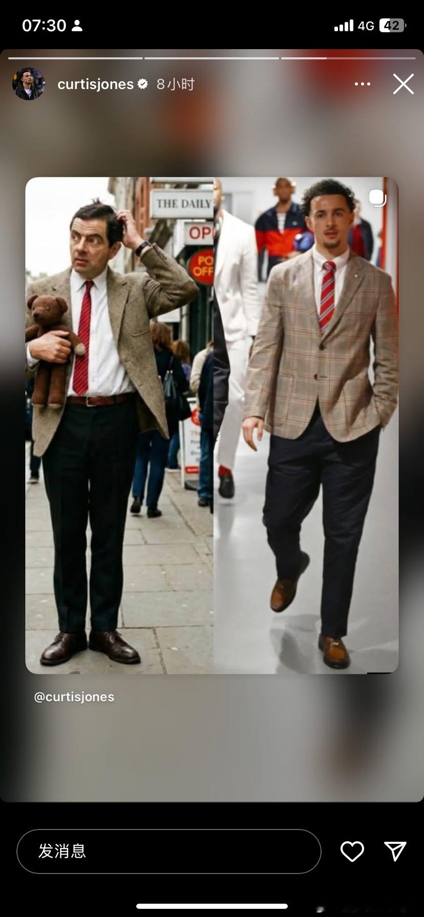 琼斯ins调侃他的衣服像憨豆