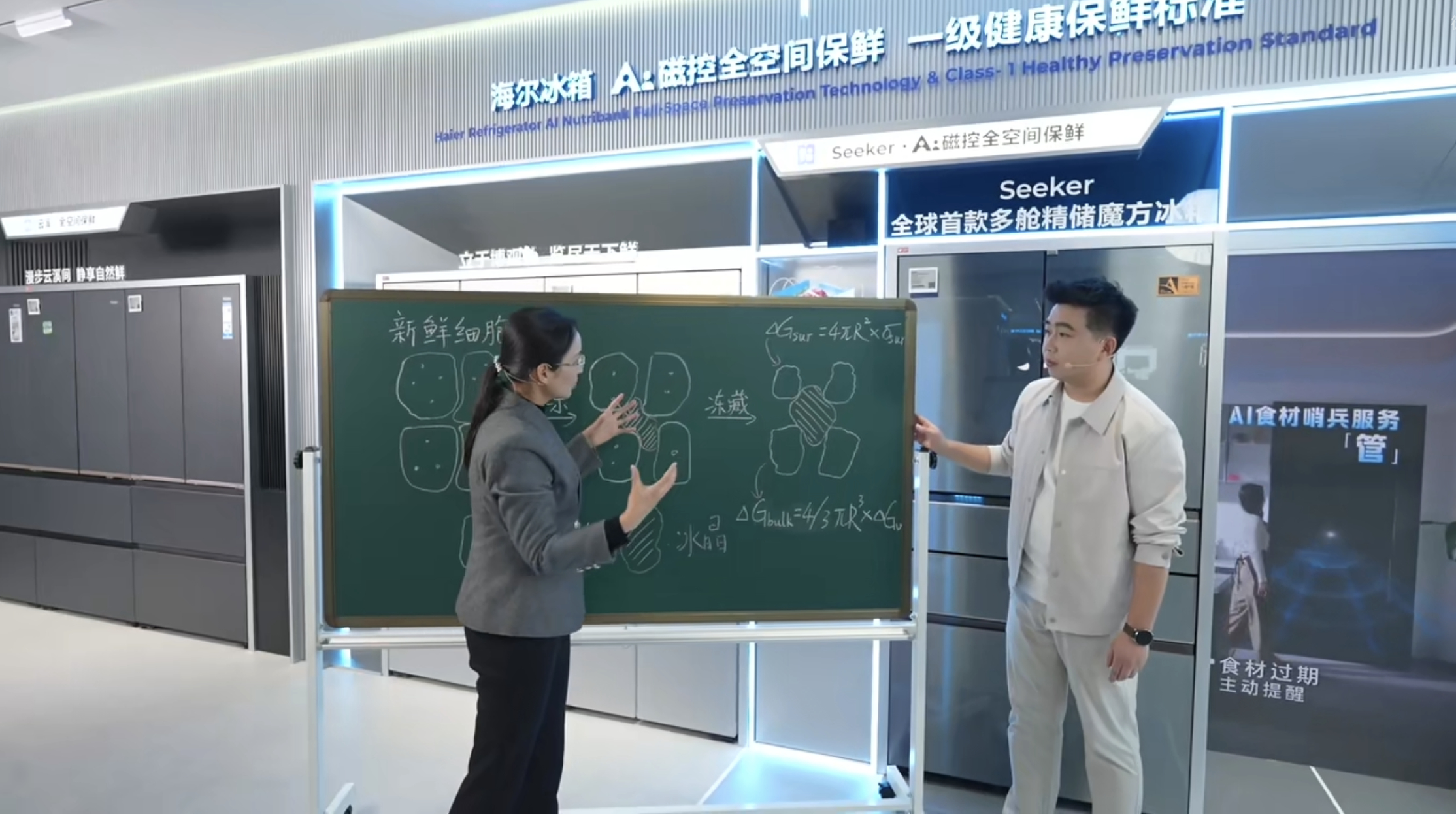 详细了解了一下,原来是冰箱有了磁控技术的加持之后,磁场进入冰箱后通过均匀恒定的弱磁场来梳理食材内部水分子,分解大水分子团、抑制冰晶刺破食材细胞,从微观层面锁住营养和鲜味,久存也不流失。而且通过AI之眼+AI决策还能识别食材、做饮食托管,存取指引都非常方便。海尔在AI家电领域的布局,真的是精准踩中用户需求啊。