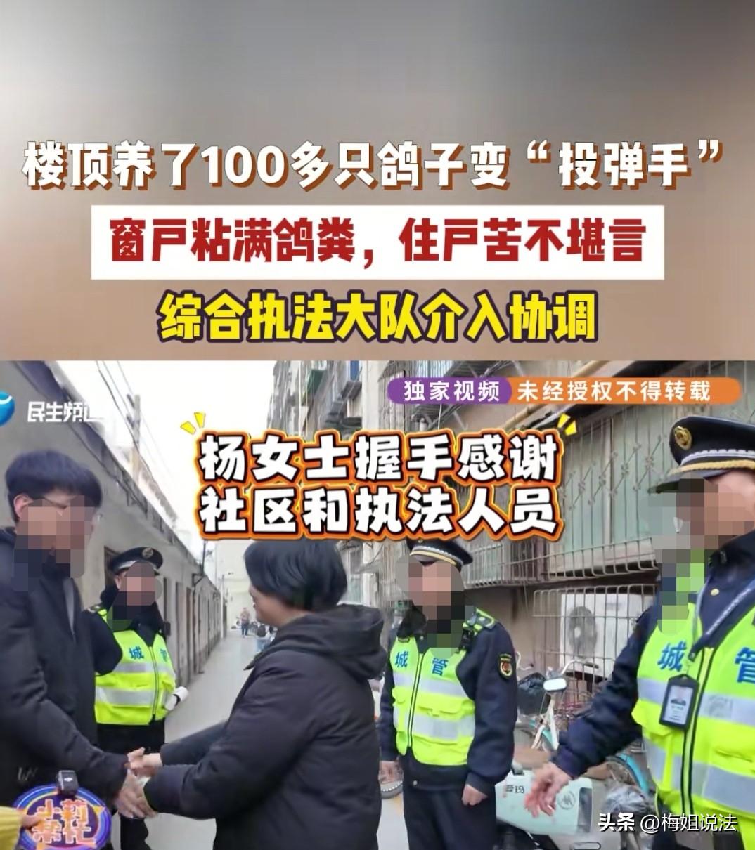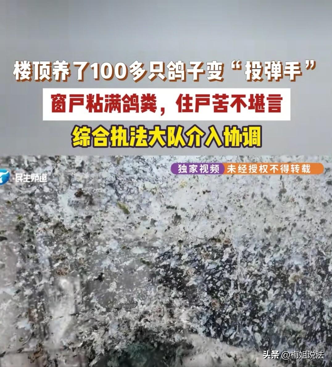 河南郑州,杨女士刚住进新家,就发现窗户玻璃上糊满鸽子粪,晒衣服不敢开窗,臭气熏天。原来楼上的崔大爷在家养鸽子,杨女士找崔大爷协商,崔大爷却理直气壮地拿出养鸽证,扬言说,谁敢动我的鸽子,一只鸽子值20万! 杨女士搬到这个小区不久,各方面都很满意,只是偶尔看到窗户是有鸽子粪。一开始她并没有在意,毕竟小区里有鸽子飞来飞去,也是难得的生活小点缀。 可是时间一久,才发现鸽子数量太多了,如果没啥影响也行,鸽子粪擦了又落,但是时间一长,根本擦不过来,窗户玻璃几乎被鸽子粪糊满了。 杨女士去找物业,物业听后也直挠头,说找过喂鸽子的是崔大爷好多次了,没有用。不单单是杨女士,小区里好多人都找过物业了。 业主们苦不堪言,有窗户上落粪便的,有楼下电动车车座落粪便的,有在单元门口地上落粪便的,更气人的是,小区里端着碗在外面吃饭,鸽子粪直接落碗里的。 物业跟杨女士说,已经和崔大爷沟通多次了,实在不行,你找民警来处理吧。 杨女士了解情况后投诉,民警先是找到了鸽子棚,棚搭在楼顶上,目测有百十只鸽子。 听到有人来了,崔大爷赶忙冲上来,慷慨激昂地说,谁也不能动我的鸽子,这些鸽子不是普通鸽,一只20万,看谁敢动,你们赔的起吗。 执法人员把杨女士家窗户视频给崔大爷看,说的有理有据:你看看,换位思考,如果是你家,你能受得了吗。 崔大爷举着养鸽证,振振有词地说,我有协会颁发的证书才喂养的。 同时转向杨女士说,你住的时间不长,你住久以后就习惯了,我已经养了几十年了,小区里有不少老熟人,都知道我养鸽子,哪有投诉我的? 杨女士走向前争辩,说她了解过情况,投诉他鸽子棚的业主大有人在,有的业主和崔大爷熟悉,当面不好意思说他,但是背后也去找物业了,人得有公德心。 崔大爷满脸骄傲地说,如果他的鸽子获得了大奖,小区都跟着沾光。 杨女士苦笑着说:沾光不沾光我不知道,我就是知道窗户上沾着鸟粪呢,春天,不开窗户衣服不好晾干,开窗户吧,屋里臭死个人,怎么办?我不想跟你沾光,就想怎么解决这个问题。 崔大爷还想争辩,民警严厉警告说:如果你解决不了,这就安排人员拆除你的棚子。 崔大爷一听拆除,又从口袋里掏出协会鸽棚牌号。 民警说:你的棚在哪?是不是在顶楼?顶楼属于公共区域,如果你在顶楼私搭乱建就属于违法建筑,就得给你拆除。 崔大爷一听真要拆除,态度马上软和了,连连表达歉意,称自己有脑梗,老伴又离世了,养鸽子是一个情感寄托。 杨女士气愤地说,崔大爷养鸽子幸福了,但是不能把自己的幸福建立在邻居的烦恼之上吧,让崔大爷说出个解决问题的方式。 崔大爷郑重承诺,以后每天都会在小区里转,发现有鸽子粪了,及时清理,窗户上落的粪便,他也负责擦。 杨女士不同意,鸽子这么多,天天擦也没用,崔大爷那么大年龄,不可能让他天天擦,再说家家有隐私,总不能天天让他来家里擦玻璃吧,这不是长久解决的办法。 崔大爷这次态度很好,再次表态,明天让儿子把楼上规整规整,能处理的就处理一批,减少鸽子数量。 杨女士无奈表示,希望多处理一些,如果鸽子数量少,落的粪便少,她自己每天清理也没问题,目前也只有这一个解决办法,观察着看吧。 根据《民法典》第二百八十八条:不动产相邻权利人应按有利生产、方便生活、团结互助、公平合理原则处理相邻关系。 崔大爷的鸽子造成的鸽粪,已超出合理容忍度,属相邻关系侵权,如果大家遇到这种情况,会怎么处理? 内容来源:小莉帮忙