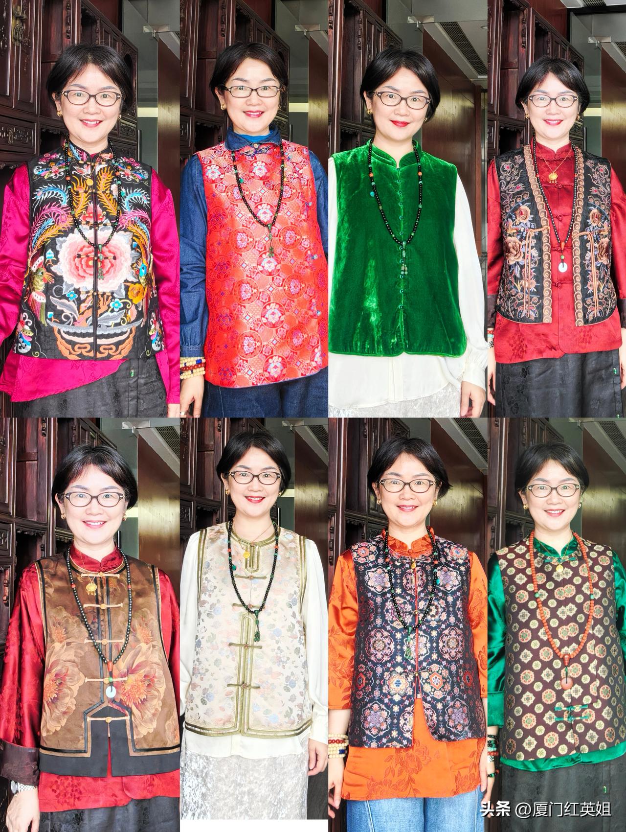 52岁姐姐 用8套中式春装诠释岁月沉淀之美 50岁后,我把原来的职业装全部归拢置在衣橱的角落,触手可得处全换成了新中式,不仅代表我对服饰认知的转变,是我对踏入50岁门槛的另一种生活态度的表达。 春天,万物盛开的季节,也是一场盛大的颜色盛宴,你呈现给世界的每一种色彩都代表着生命的复苏和态度,你每一次的绽放都直接将春天的氛围感拉满。 我把那些高领毛衣束之高阁,买来了各种颜色的香云纱上衣,红色,黑色,祖母绿,纯白,爱马仕橙,克莱因蓝,玫红等等,搭上不同的新中式马甲,把五彩斑斓的新中式风融入春日的日常,不管是踏青赏春,还是聚会宴席,或是职场通勤,都非常适宜。 52岁姐姐,用8套中式春装诠释岁月沉淀之美,因为都在办公室摆拍,所以下装都是搭配颜色不一的半身裙子,平日里,我还是喜欢搭配万能的各种颜色镰刀裤。 第一套:玫红色的皮子不规则上衣搭配刺绣香云纱马甲,周末我配了全色的给马甲+镰刀牛仔裤,好像效果更好。 第二套:牛仔衬衫搭配红色宋锦马甲,打破搭配常规,拉低亮丽的色彩,自己感觉低调了些。 第三套:乳白色真丝衬衫搭配祖母绿马甲,这款马甲另一面是翠绿色的香云纱,我自己更喜欢祖母绿的厚重感。 第四套:红色香云纱皮子外套搭配香云纱刺绣马甲,这件日皮子适配率高,另一面是黑色,正反面都好配。 第五套:还是红色香云纱皮子上衣搭配香云纱牡丹印花马甲,这款马甲我曾搭配过爱马仕橙和黑色,都还不错,关键这种端庄优雅的格调,可以让我穿到很老很久。 第六套:乳白色真丝上衣搭配白底豆沙绿相间的宋锦马甲+乳白色的半身长裙,一穿上这一套,整个人看起来特别纯净清爽,春意盎然,特别春天。 第七套:蓝色宝相花的宋锦马甲,因为是边边有橙色元素,所以搭配了爱马仕橙的香云纱皮子上衣,很明亮活力,个人觉得搭配白也会不错。 第八套:祖母绿的真丝上衣搭配酒红色的宝相花宋锦马甲,为了呼应马甲上的绿色盘扣,我煞费苦心,冬天配绿色高领毛衣,春秋配祖母绿衬衫,夏天配祖母绿的针织短袖,爱美从来不是肆意对付的事。 新中式的颜色饱和度高,色彩鲜明,很多人可能不接受年过50还穿得如此张扬,但你转念想想,年轻时怕高调太出风头,不太敢穿亮色,现在又觉得不合时宜,那我们的一生陪伴我们的岂不都是单调的黑白灰。 所以,年过50的我们,赶紧打着抓住青春尾巴的名义,把亮色当成自信的勋章,趁春光正好,为自己明媚一把。
