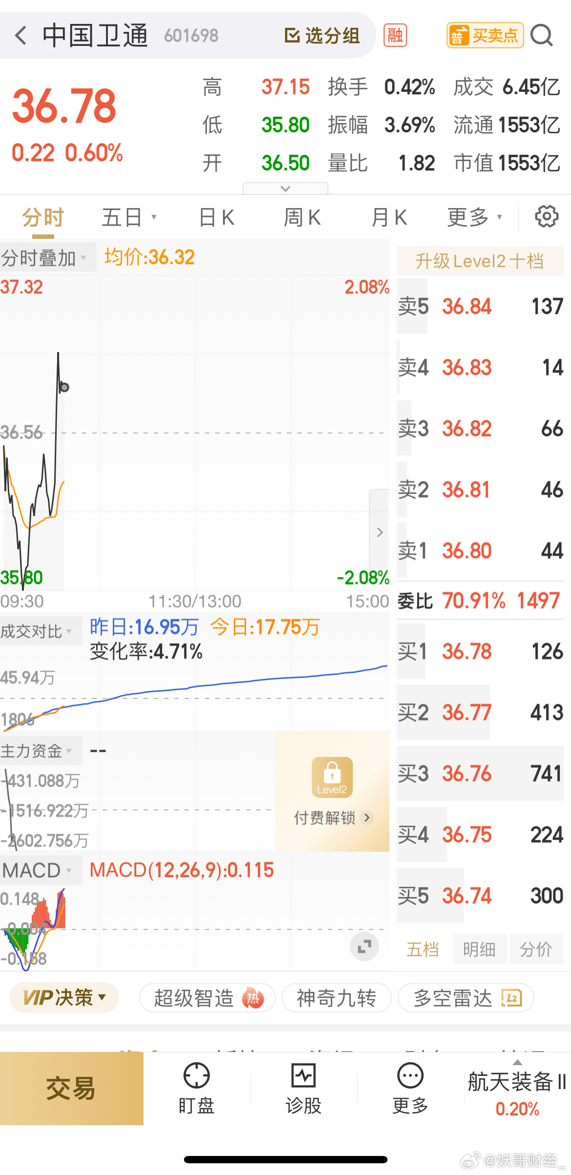 平潭发展,中国卫通,我没提示的情况放心持有待涨就好!进出我会提前通知,切勿盲目操