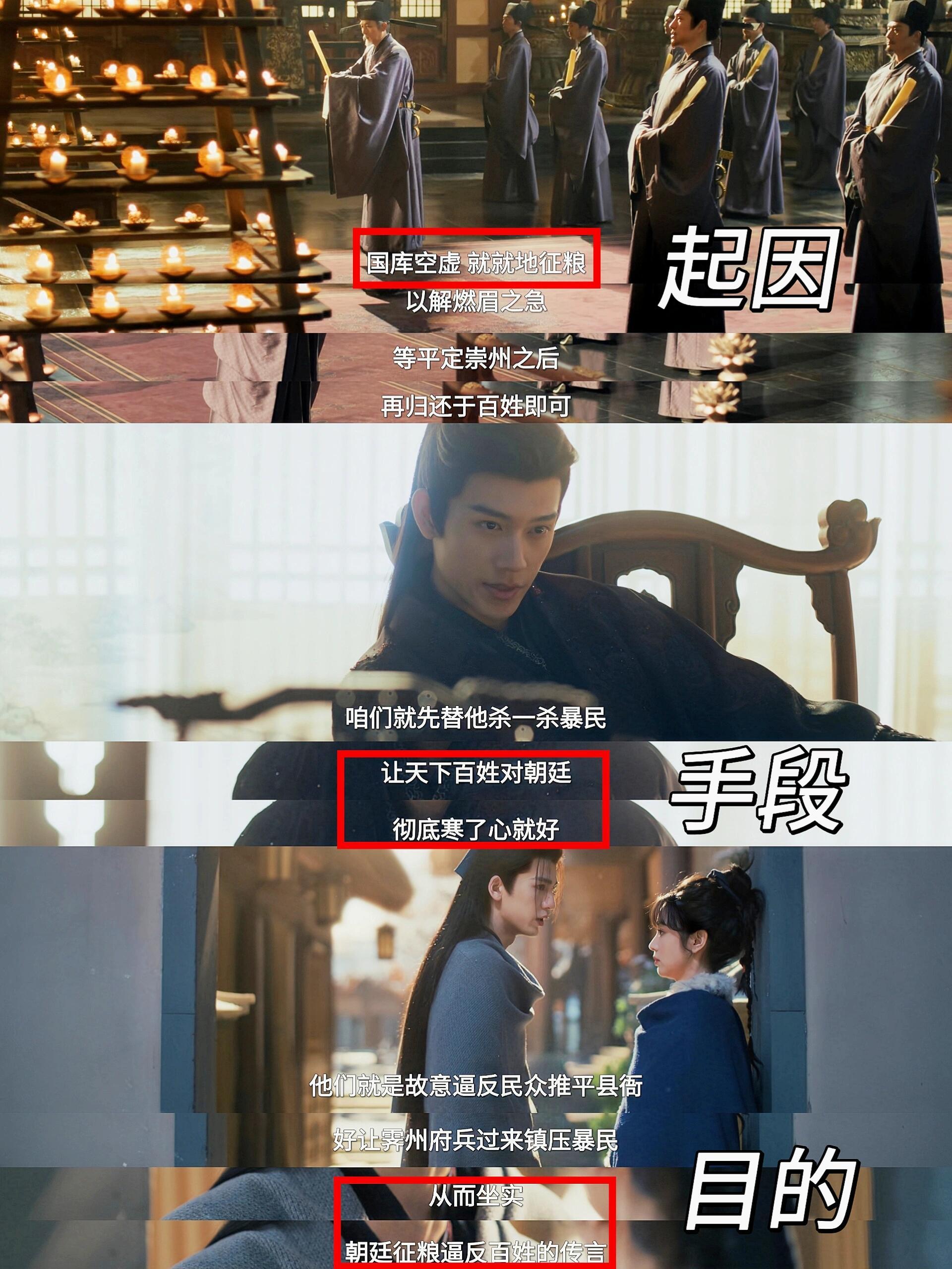 明白《逐玉》各方势力的意图了1⃣各方势力正派:谢征(护百姓)贺敬元+李怀安(护百姓)反派:魏严+魏宣(征粮方,保权位)长信王+随元青(搞事方,夺皇位)齐旻(搅局方,报仇)2⃣其中长信王的手段及目的导火索:强行征粮、马家村村民被屠手段:随元青煽动百姓征粮的不满情绪,把屠村嫁祸给朝廷,让百姓恨朝廷,再引导暴民去攻城,如果百姓因此有死伤,就彻底坐实朝廷残暴,逼迫民反的现象目的:造成朝廷官逼民反的现象,让天下大乱,长信王自己再以清君侧出兵,为自己起兵造反铺路…逐玉节奏