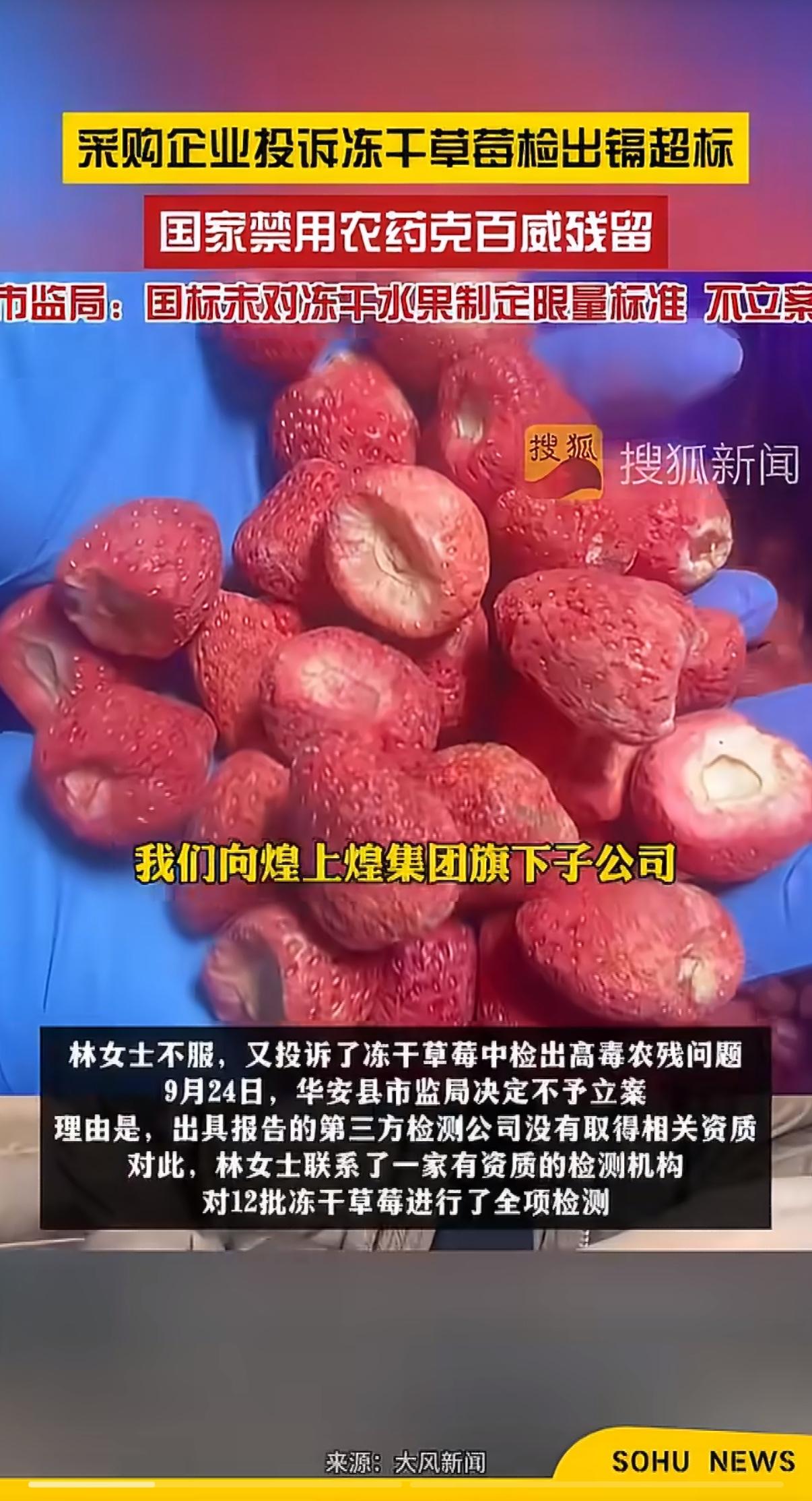 福建漳州一家食品企业自检一批冻干草莓,结果让人吓一跳,重金属镉含量直接飙到0.728mg/kg,比新鲜水果限量超标14倍,还查出20多种农药残留,甚至有国家明令禁用于瓜果的高毒农药克百威。更离谱的是,因为现行国标对冻干水果没有明确的限量标准,监管部门拿着检测报告也没法立案处罚,明明问题摆在眼前,却卡在规则里动不了,这事一出来,很多人都坐不住了。 冻干水果现在很受欢迎,口感脆、味道浓,大人小孩都爱吃,大家默认它是健康零食,可这次的事直接撕开了行业的遮羞布。企业自检发现问题,本是负责任的表现,却因为标准空白,让问题产品没法被及时管控。镉这种重金属会在身体里累积,伤肾伤骨头,克百威是高毒禁药,长期吃对身体的危害可想而知,冻干工艺还会把有害物质浓缩,风险比新鲜水果更大,消费者花着钱买零食,却在不知不觉承担健康风险,换谁都没法安心。 标准空白不是小事,它暴露的是整个产业链的漏洞。从种植环节乱用农药、土壤重金属超标,到加工环节没有统一规范,再到监管环节无标可依,每一环都有隐患。企业想合规生产,却没有明确指引;监管想严格执法,却缺少法律依据;消费者想吃得放心,却没有安全保障,这种尴尬局面,说到底是标准更新没跟上行业发展,让新兴食品品类成了监管盲区。 更让人揪心的是,这种“有问题难追责”的情况,可能会让不少企业心存侥幸,反正没有标准约束,降低成本、忽视安全,最后吃亏的还是普通消费者。食品安全从来没有小事,不管是新鲜食品还是加工食品,安全底线都不能破,不能因为是新工艺、新产品,就放任风险不管。 我们期待标准能尽快完善,把冻干水果等新兴食品纳入监管,让监管有法可依,让企业有规可循,更让消费者能放心吃。大家平时买冻干食品,也会多留意品牌和检测报告吗? 来源:新京报
