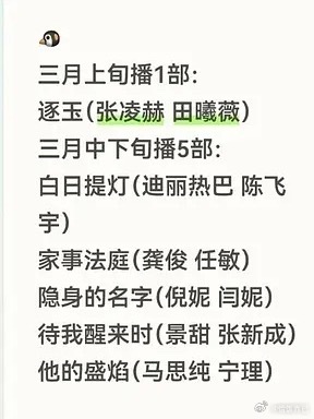 🐧🥝三月排播,中下旬各有5部戏即将定档