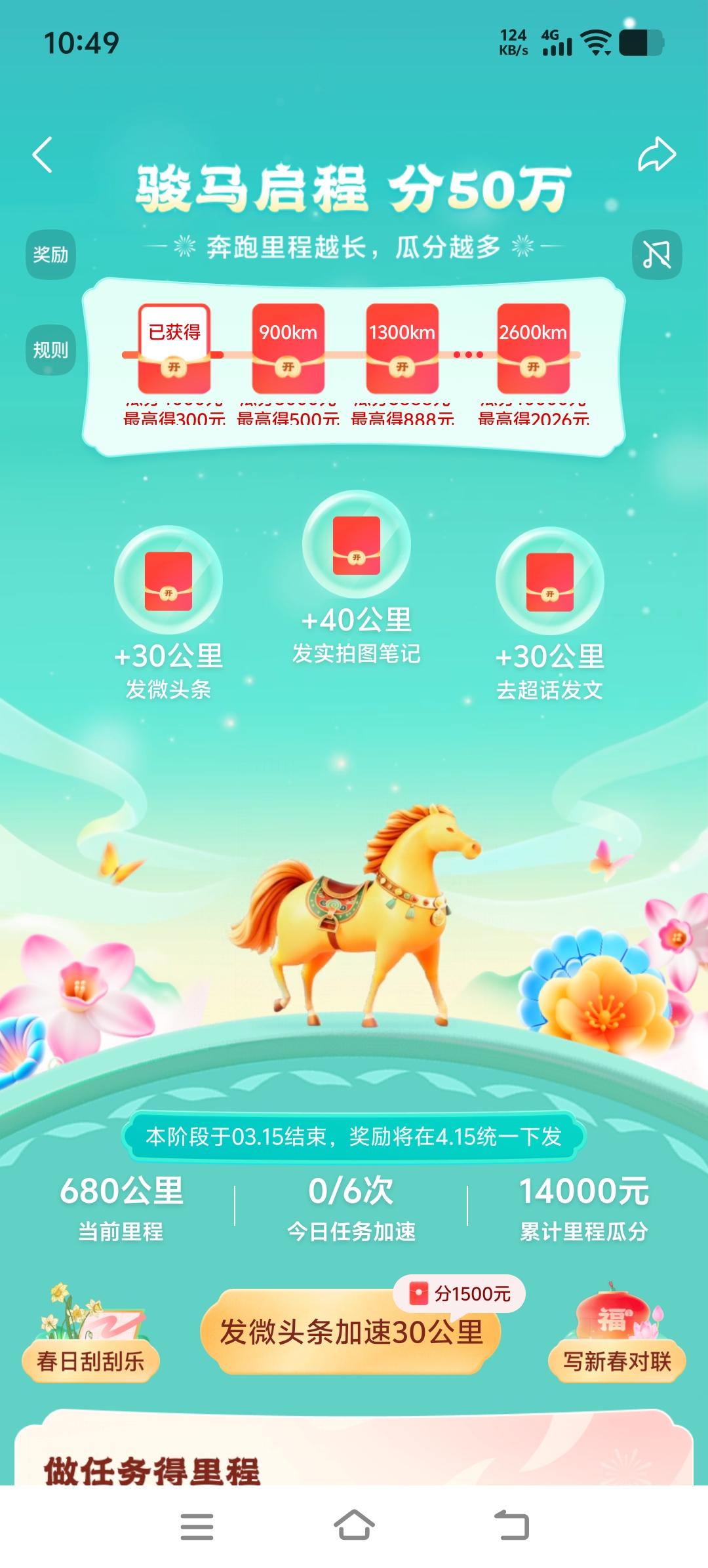 骏马启程,分50万,跑了680公里了。 马年吉祥如意。 今天接着跑。