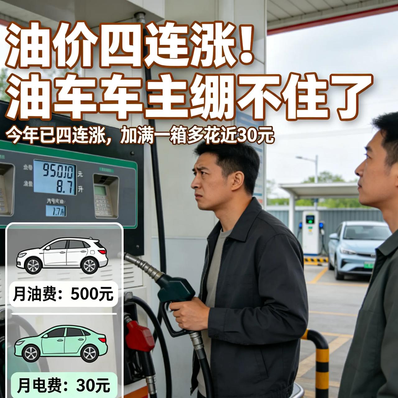🚗 油价四连涨,油车车主真的绷不住了! 昨天去加油,才发现油价又涨了! 今年已经四连涨,加满一箱95号,多花近30块。 同样开车,油车一个月油费几百,电车才二三十。 现在油车车主看电车,眼神里全是羡慕。 真的有点绷不住了。 你现在开油车还是电车?油价这样涨,你还扛得住吗?, 油价四连涨 油车电车对比 民生热点 打工人日常油价频繁上涨,电车会成为趋势么?中东冲突对全球燃油市场有何影响 打工人日常 民生热点 油车电车对比