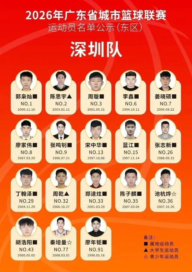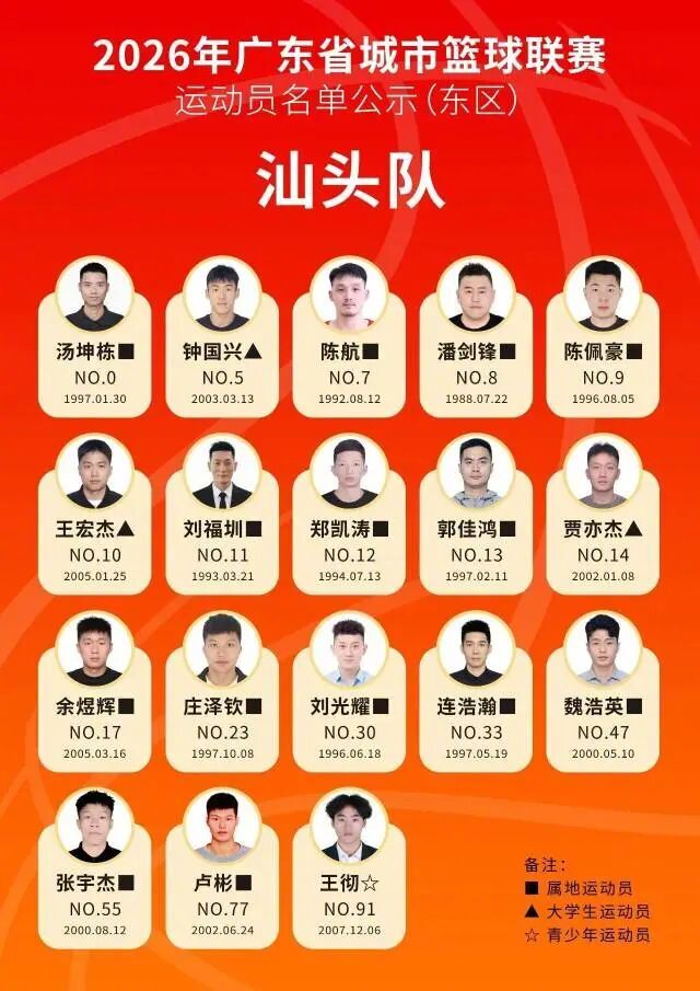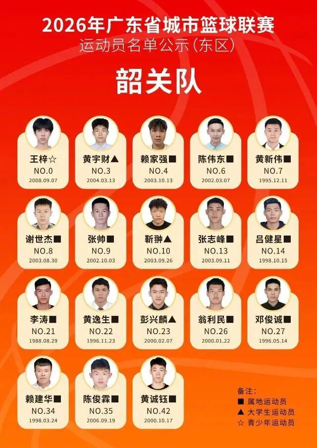 #粤BA21城队伍名单公示#【“粤BA”来了!21城队伍名单公示】#打工暂停睇粤BA先##广东人的 CBA是粤 BA#距离2026粤BA揭幕战,还剩不到两周。自3月2日联赛组委会成立后,广东全省各地迅速进入备战节奏。今天(3月12日),2026年广东省城市篮球联赛运动员名单公示。这是一次从“省级联赛”到“城市IP”的升级。自2015年省男子篮球联赛创立以来,这项赛事已点燃全省民间篮球热潮。全新亮相的粤BA在原有基础上更深度聚焦群众参与、本土情怀与青少年培育——全面推行本土化,取消交流球员名额,并禁止CBA、NBL等职业联赛注册球员参赛,让每一支队伍都真正代表这座城市。根据规程,粤BA分为东西两区:东区11队(清远、韶关、惠州、东莞、深圳、河源、梅州、潮州、揭阳、汕头、汕尾),西区10队(广州、珠海、佛山、中山、江门、阳江、湛江、茂名、肇庆、云浮)。小组赛阶段采用主客场单循环赛制,让热爱在家门口落地,让较量在主场升温。3月12日,记者从广东省篮球协会获悉,2026年广东省城市篮球联赛运动员报名工作已完成,根据《关于举办2026年广东省城市篮球联赛、城市足球超级联赛的通知》《2026年广东省城市篮球联赛竞赛规程》的有关规定,现对本次联赛参赛运动员名单进行公示,公示期为2026年3月12日至3月14日。在公示期内,如对公示名单有异议,须以书面形式向2026年广东省城市篮球联赛竞赛组反映,材料需加盖所属赛区体育行政部门公章的书面异议申请及翔实佐证材料,逾期或材料不全的,不予受理。反映的情况要实事求是,客观公正。对故意捏造事实,给工作造成不良影响的,一经查实将按照有关规定严肃处理。据南方+