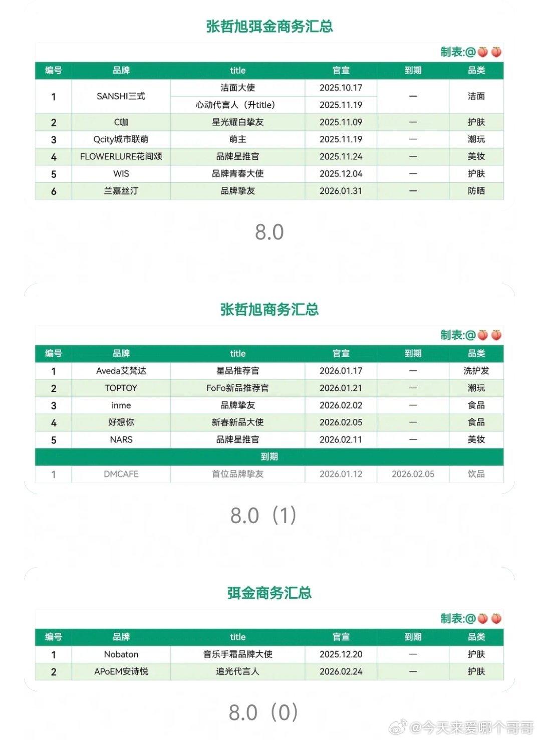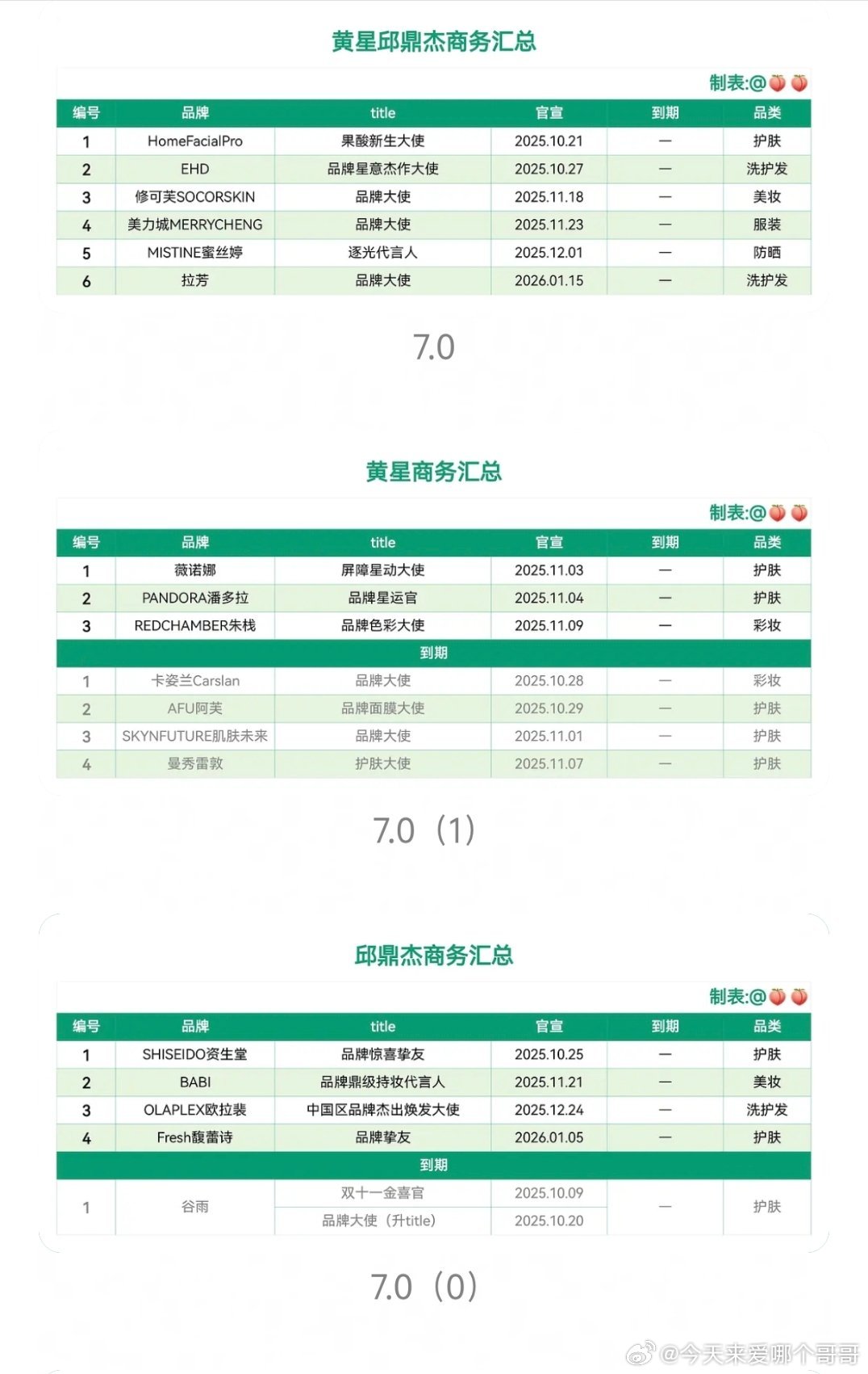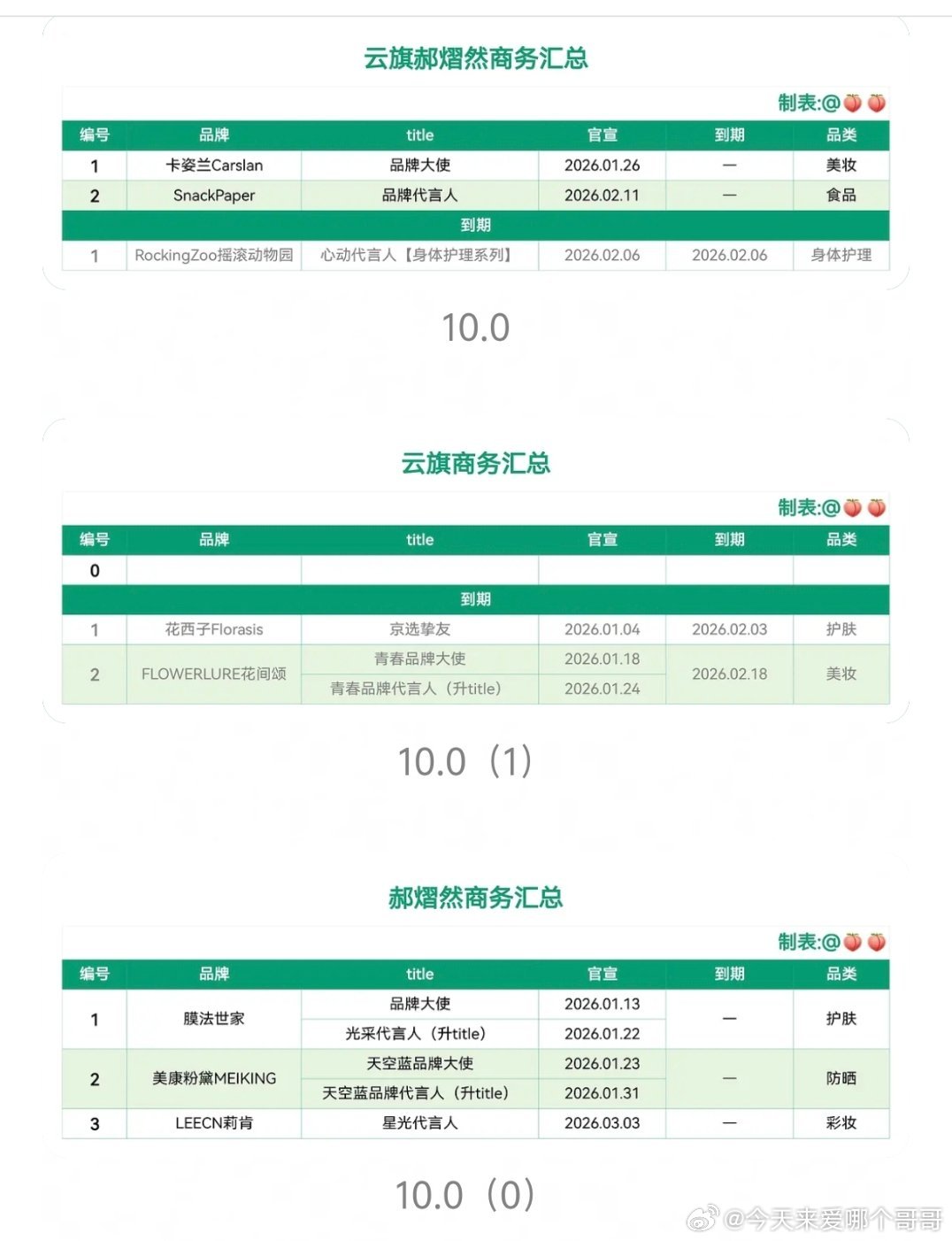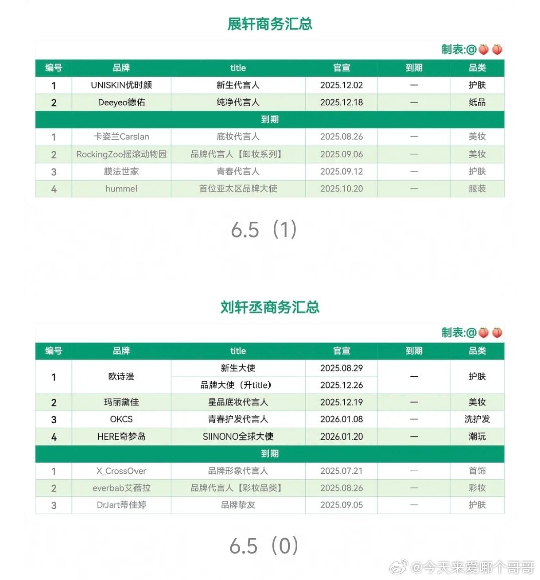 环娱商务汇总,田栩宁和梓渝的数量和质量都是断层的,10.1居然一个个代都没有,为啥