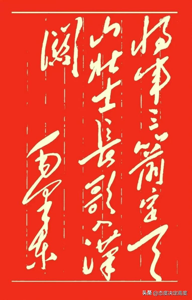 三箭定天山,长歌入汉关:谁能不热血? 这两句书法作品写得很有气势。第一句说将军三箭射下天山,简直一招制胜,让人想起战场上的豪情。第二句讲士兵们唱着歌,踏进汉地关口,既有胜利的喜悦,也带着归来的自豪。 短短十四字,就把战争的紧张和胜利后的轻松展现得淋漓尽致。笔墨之间充满力量,读起来让人热血沸腾,仿佛身临其境。 这种豪迈的情感,不正是我们需要的吗?这才是真正的中国风骨,令人敬佩!边塞征战诗
