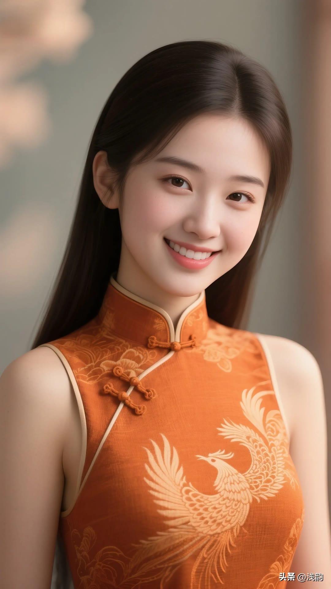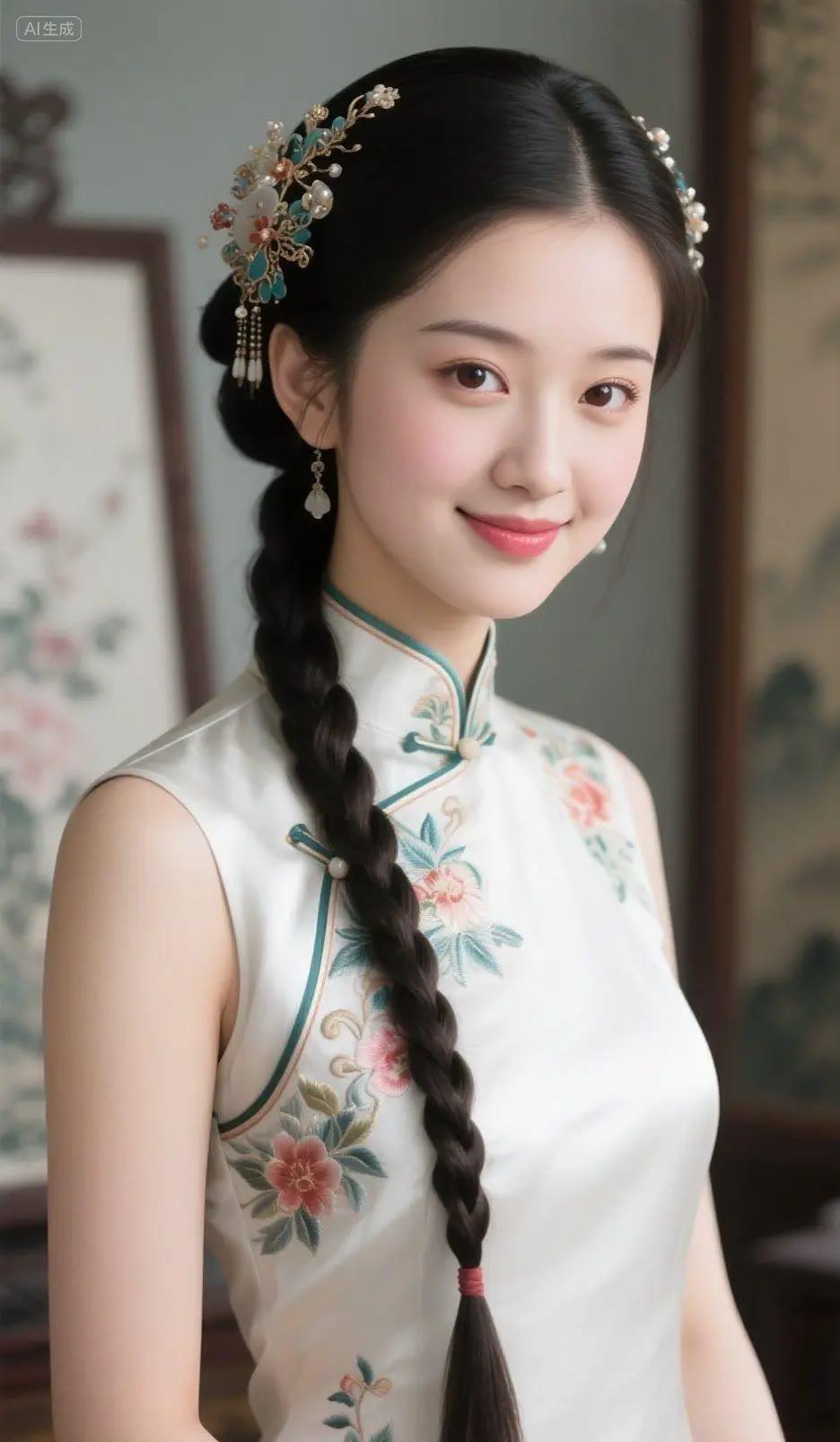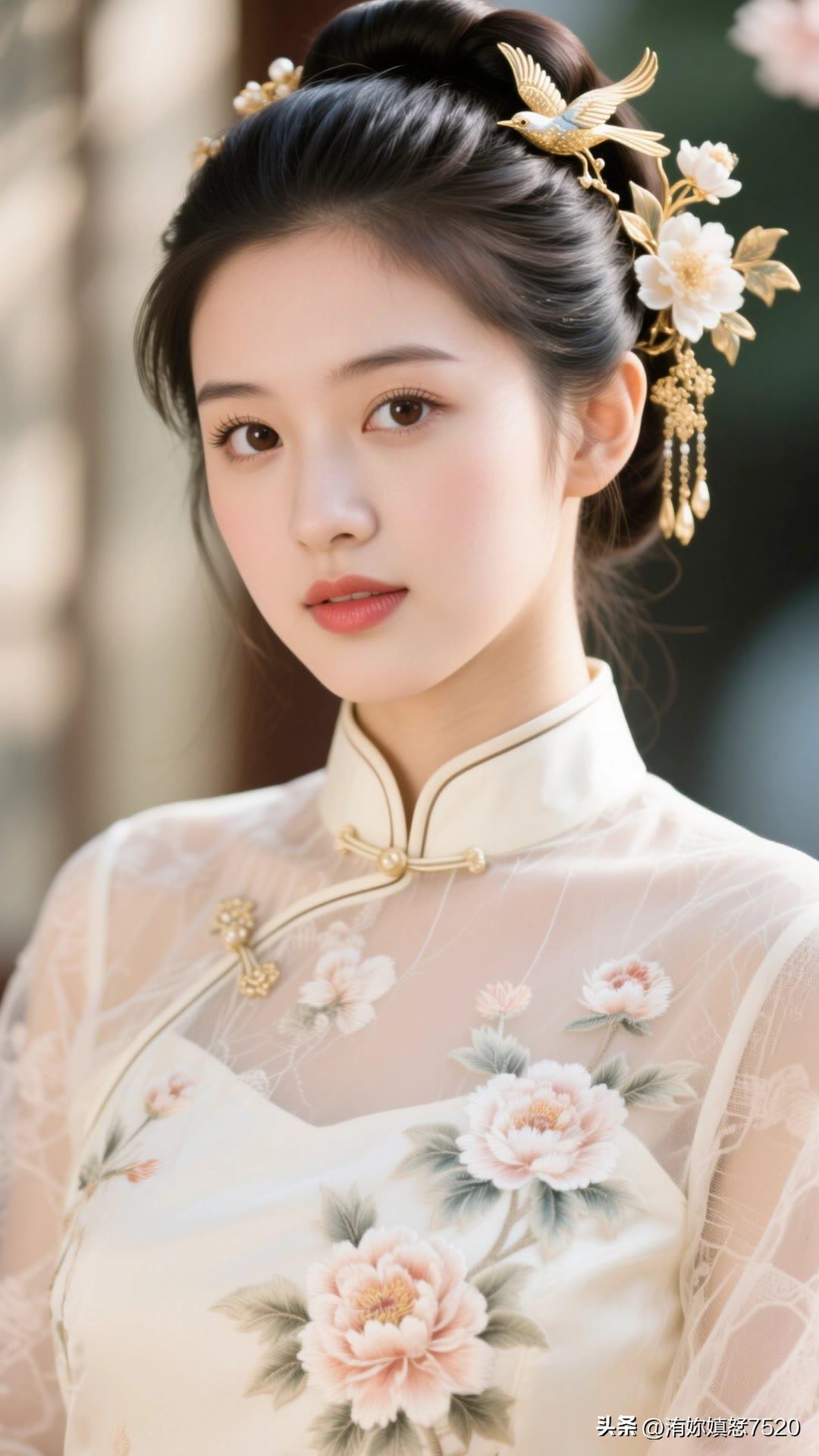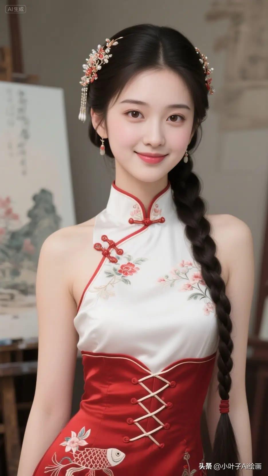 古风少女,红白相间旗袍,古典优雅,韵味十足。