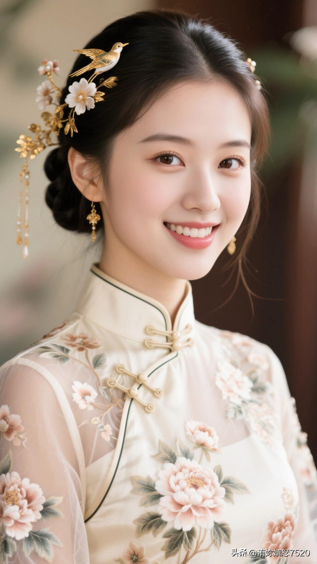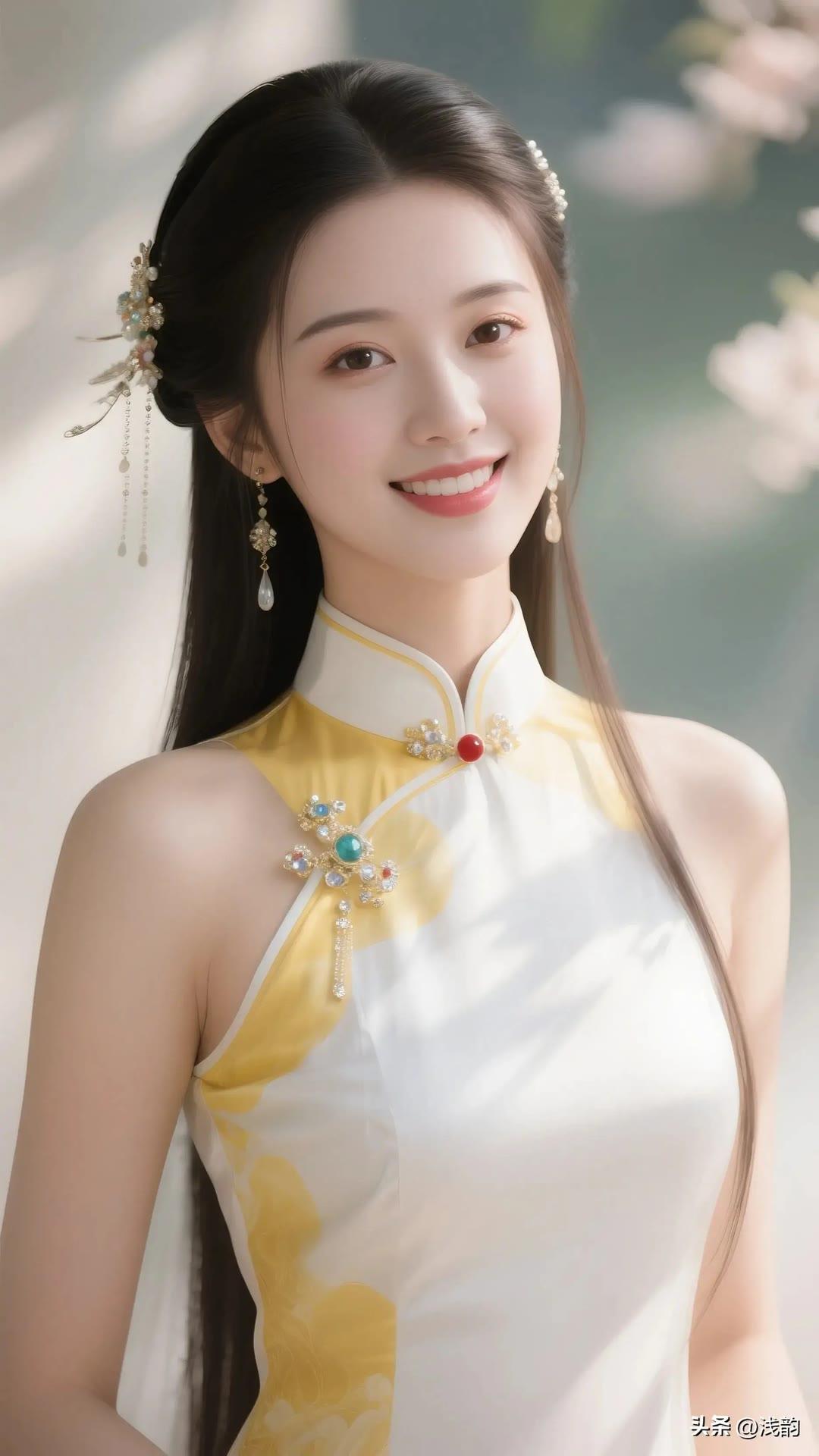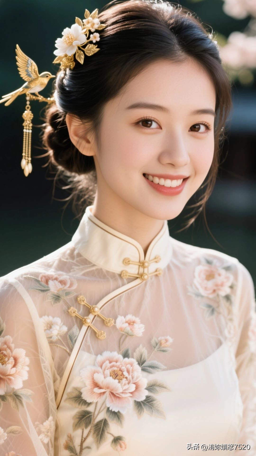 古风少女,红白相间旗袍,古典优雅,韵味十足。