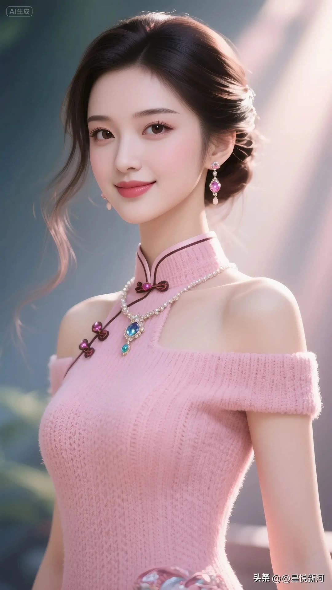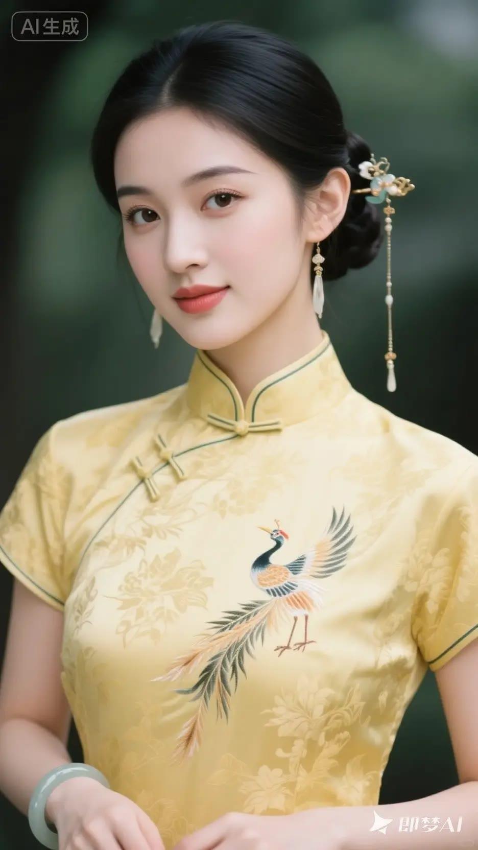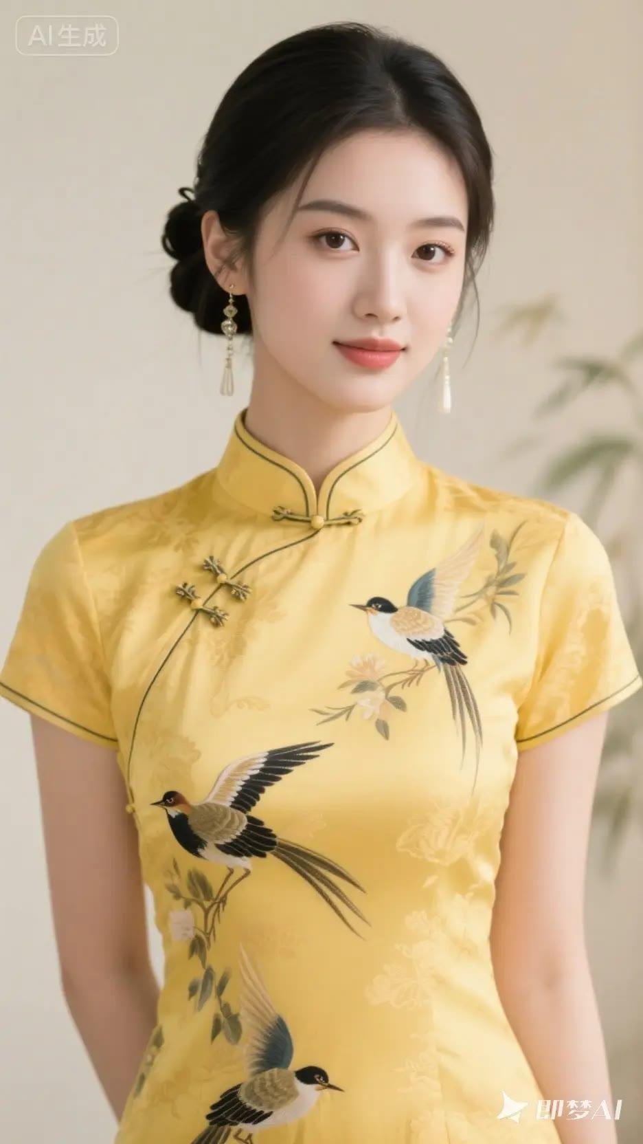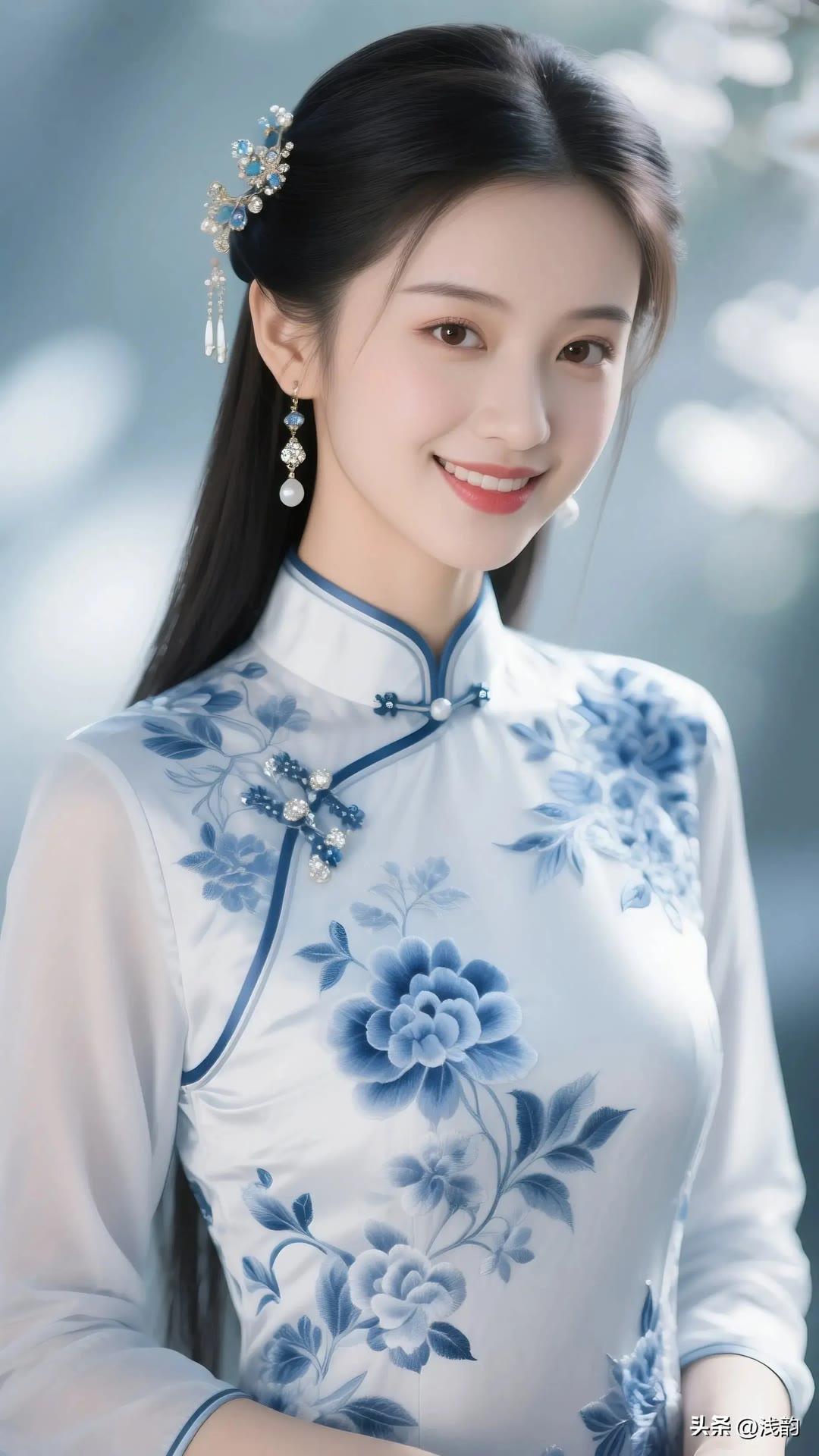 古风少女,红白相间旗袍,古典优雅,韵味十足。