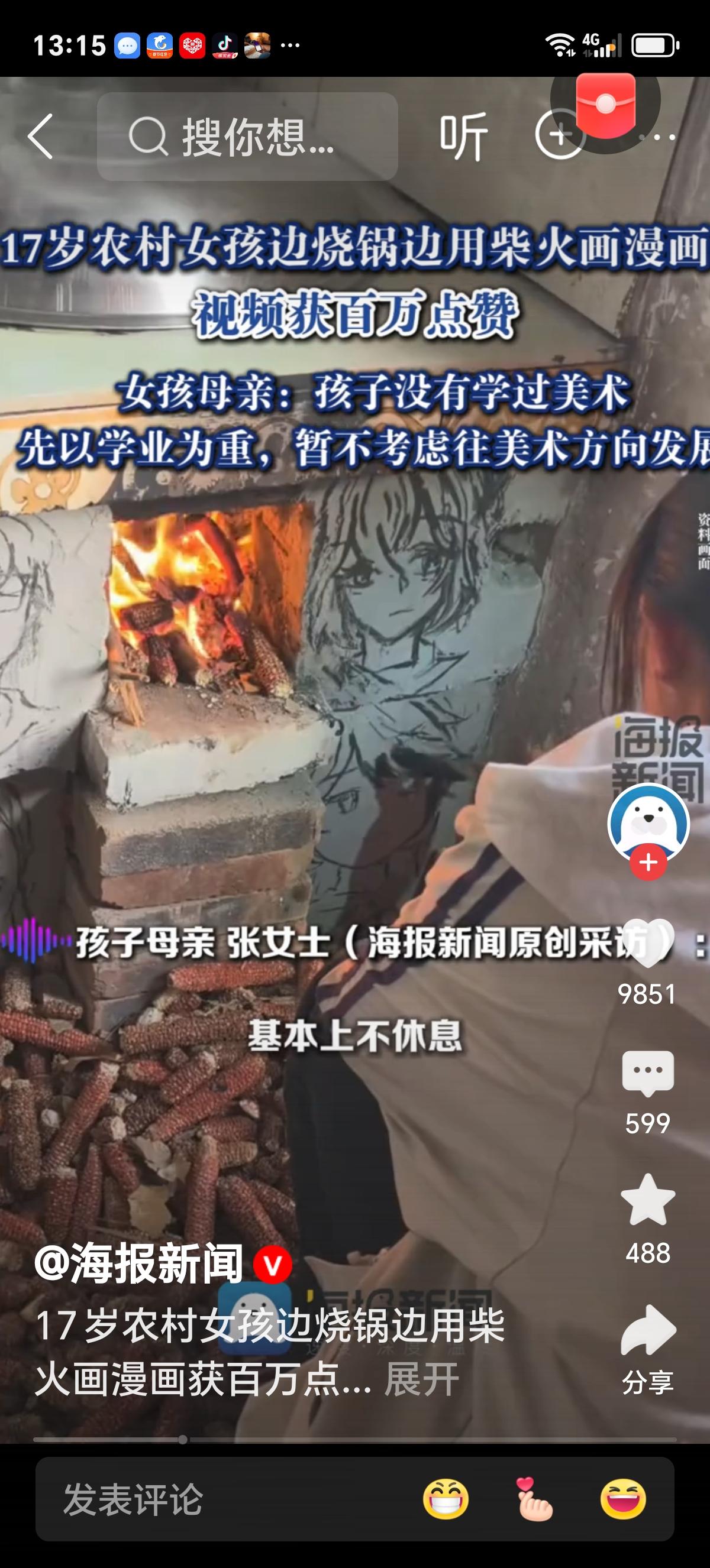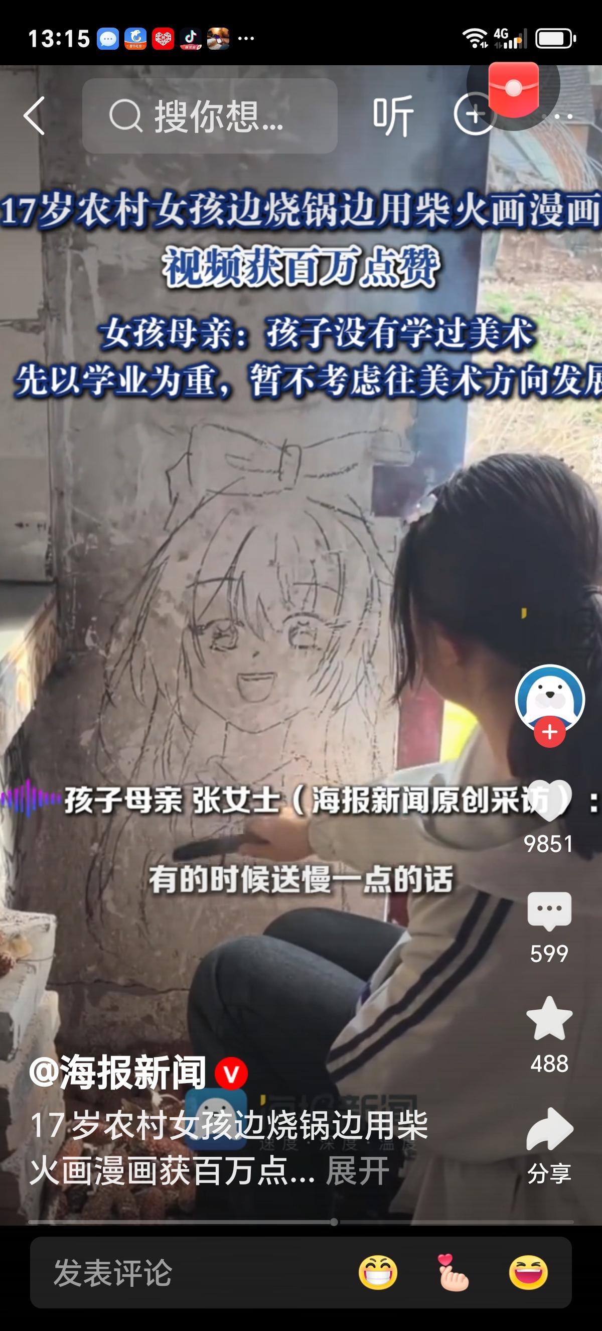 她既没用数位板,也没开美颜滤镜,更没等流量推流—— 只用烧火棍,于灶膛滚烫的灰烬之上,绘下第一只蝴蝶。 翅膀是从锅底刮下的黑灰,触角是柴火未燃尽的细枝,而蝶腹那一抹朱砂红?是奶奶过年贴春联剩下的胭脂膏。 网友称“好励志”,可没人留意: 她画完蝴蝶,即刻用火棍将痕迹抹平——并非怕被骂“不务正业”,而是怕妈妈掀开锅盖时,发现灰里藏着翅膀,会心疼地叹一句:“又烧糊了饭。” 她画的并非漫画,而是《灶神图鉴》: → 第七幅:灶王爷叼着烟卷,脚边蹲着三只柴犬(她走失的狗,去年被车撞了); → 第十二幅:妈妈在蒸笼前揉面,额角汗珠滴落成星群; → 第二十三幅:自己穿着校服站在高考考场外,手里攥着的不是准考证,而是一根刚削尖的火棍。 最令人动容的细节,藏在视频第00:47秒—— 她画完一只蜻蜓,正欲抹去,灶膛突然“噗”地窜出蓝焰,火苗轻柔地舔过蜻蜓翅膀,灰痕瞬间泛起金边。 她没有躲避,只是轻轻吹了口气—— 那口气,并非想吹灭火焰,而是想把整座灶膛的温暖,都注入那只灰蝶的脉络之中。 我们总说“寒门难出贵子”,却忘了: 真正的天赋,不在聚光灯下滋长,而在灶火明灭的间隙中呼吸。 她没有WIFI,但灰烬是她的画布; 她没有老师,但柴火噼啪是她的节奏课; 她没有画展,但全村孩子蹲在灶台边,看她一笔一划,把“不可能”三个字,烧成炭,再塑成形。 评论区沸腾了: 👉 “我女儿画满作业本背面,被老师撕了。今天我把视频放给她看——她盯着灶膛蓝焰看了三分钟,突然说:‘妈,灰也能发光。’” 👉 “我在深圳做UI设计,年薪35万。昨晚重画了童年老家灶台,用的是Figma。可怎么调,都调不出那簇蓝焰里的温度。” 所谓希望,从来不是有人替你推开一扇门—— 而是你在灰里埋下一根火棍,等它自行烧出光来。 焰色笔迹 未被书写的色彩
